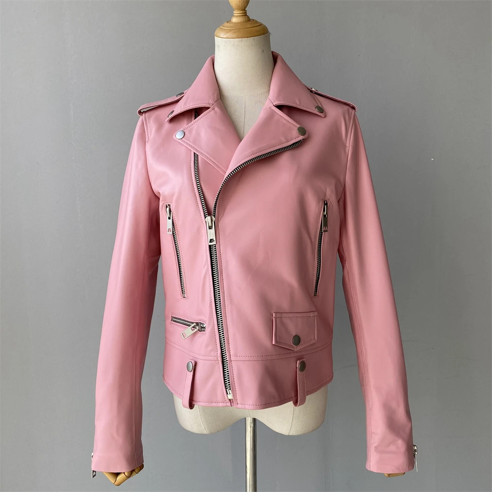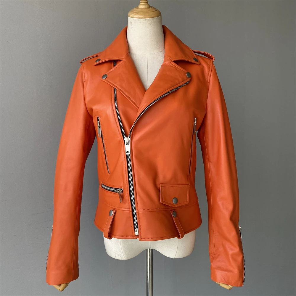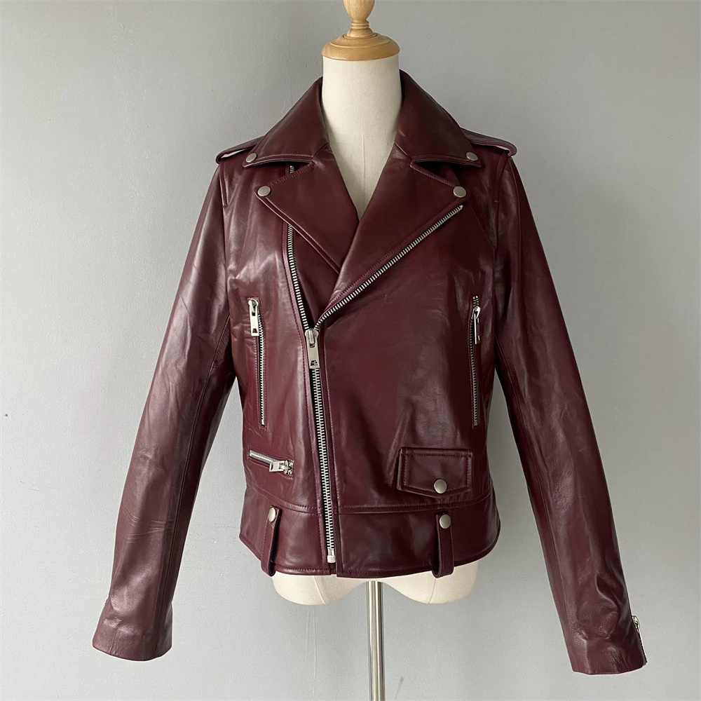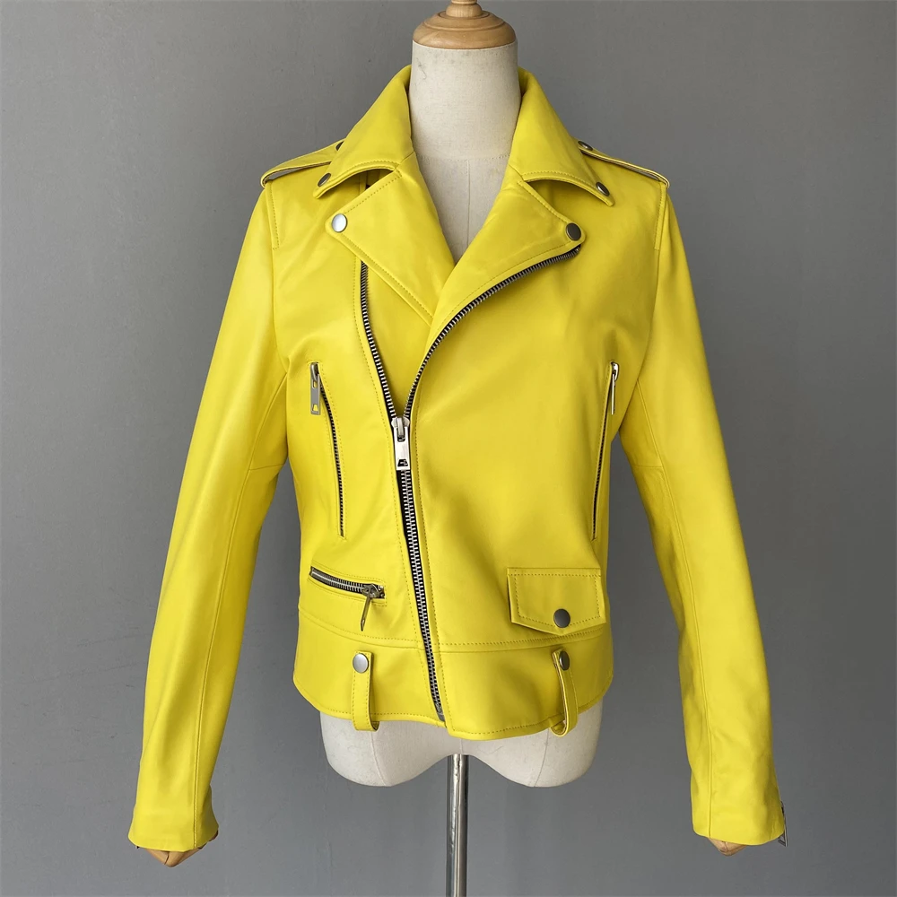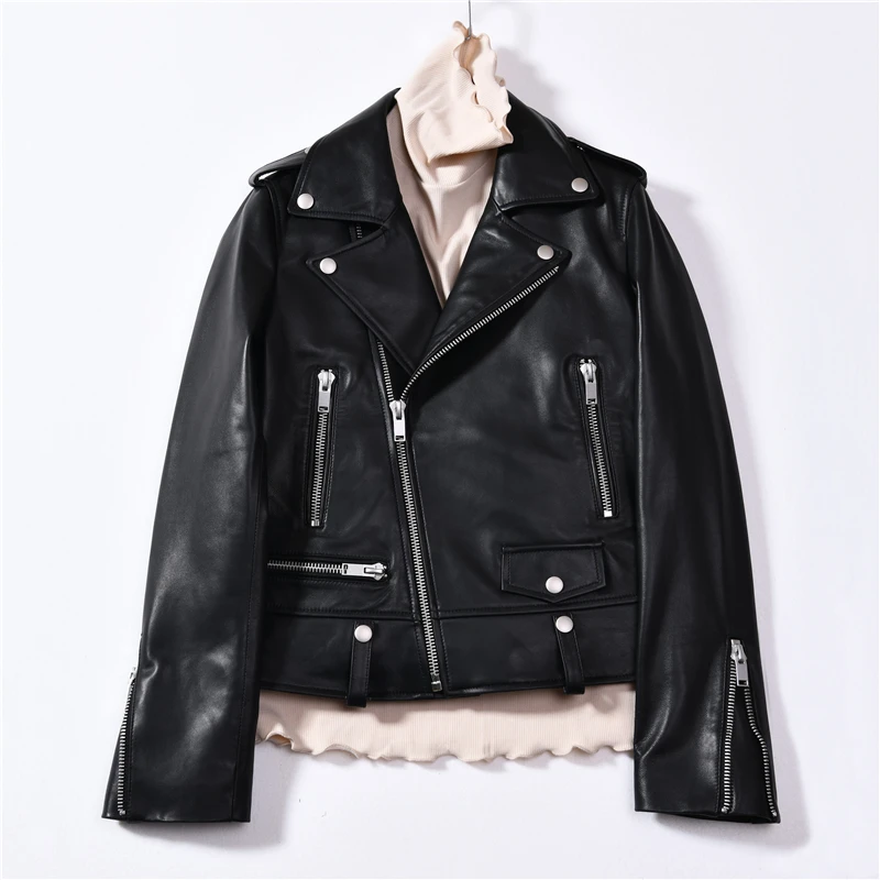 Cette veste moto zippée pour femme est fabriquée en cuir de mouton de haute qualité, très douce au toucher. Portez-le et devenez une fille cool. Cette veste en cuir véritable