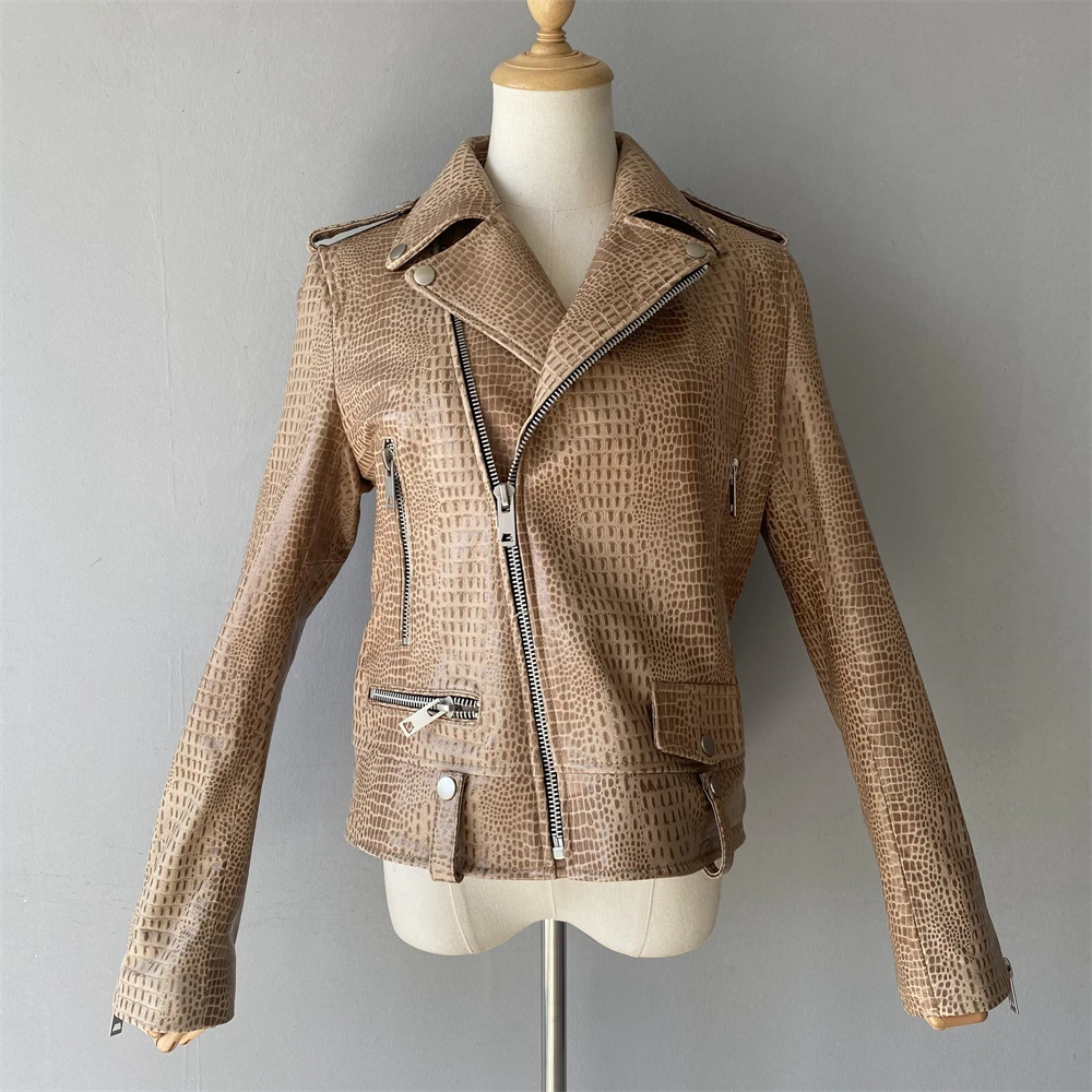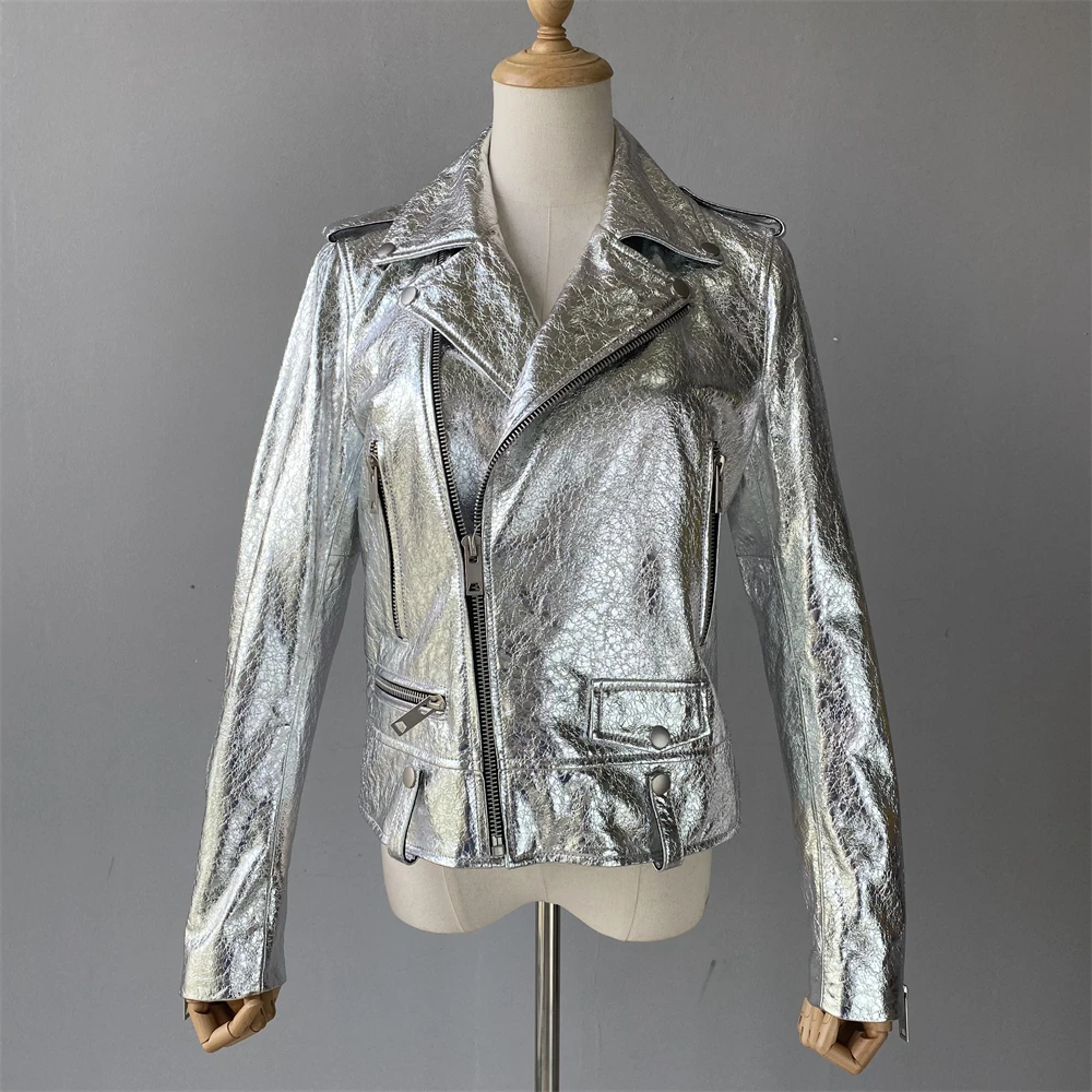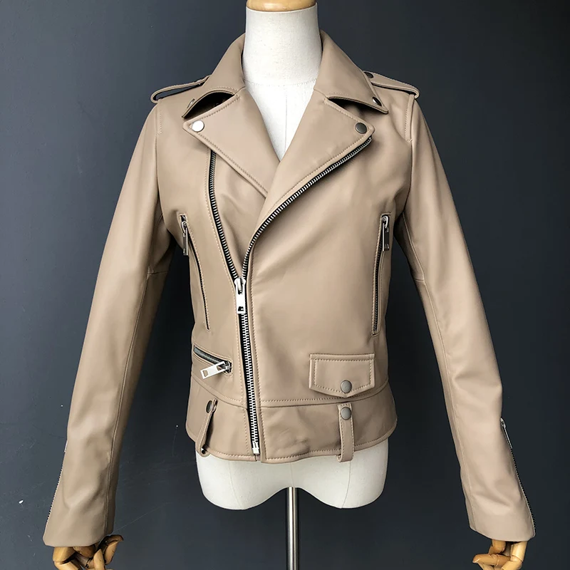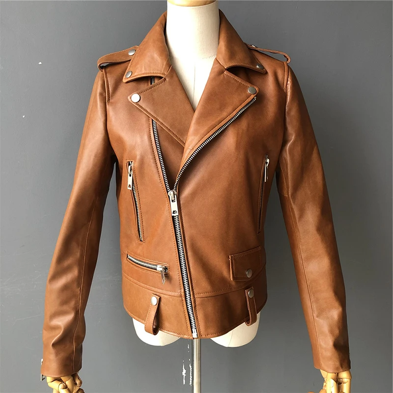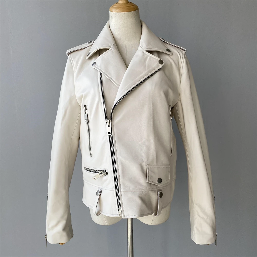 Cette veste moto zippée pour femme est fabriquée en cuir de mouton de haute qualité, très douce au toucher. Portez-le et devenez une fille cool. Cette veste en cuir véritable