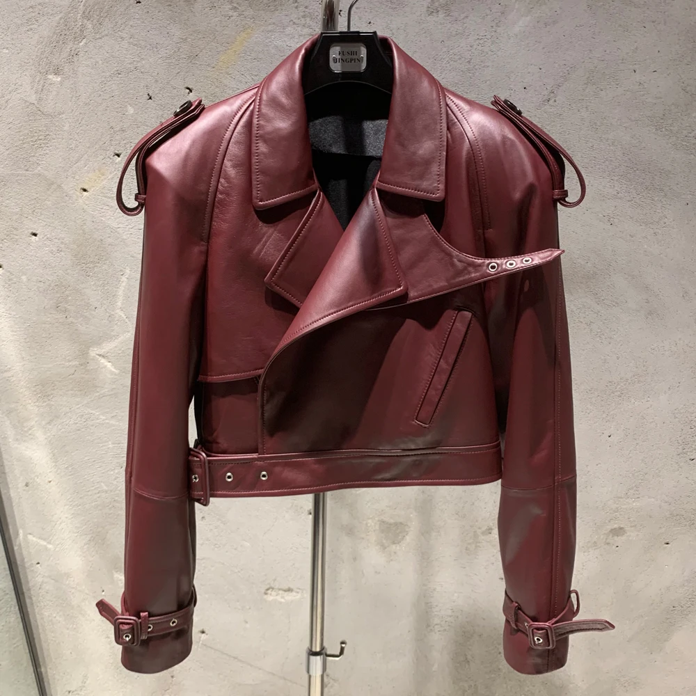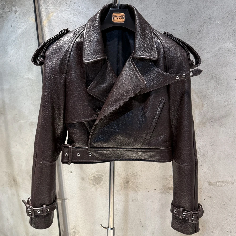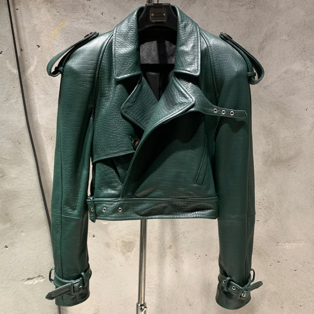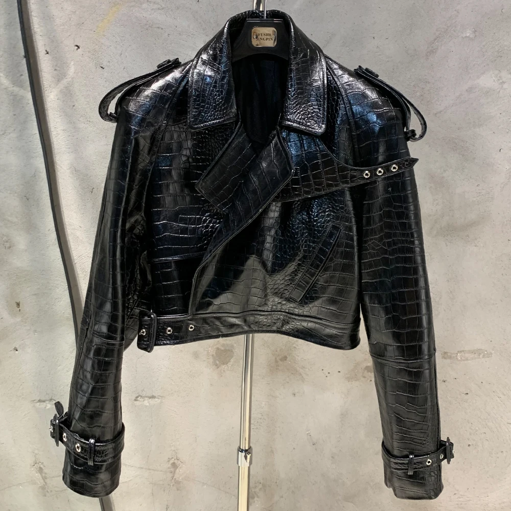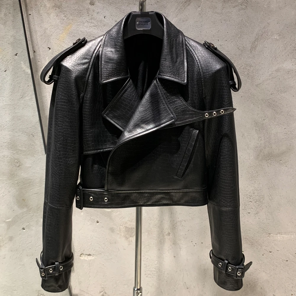 Veste en cuir gaufré pour femme, manteau en cuir de mouton véritable, large initié, hiver, 23012