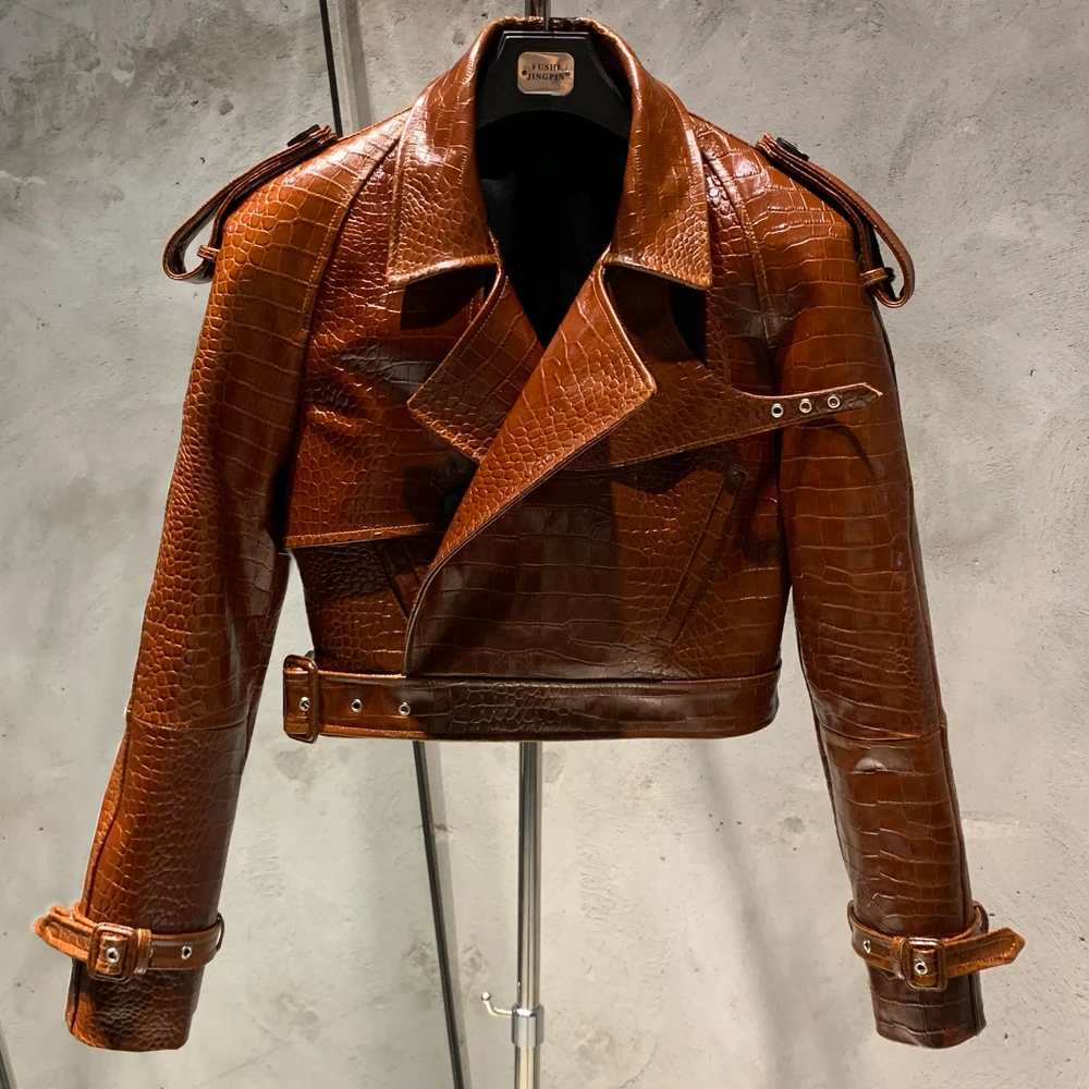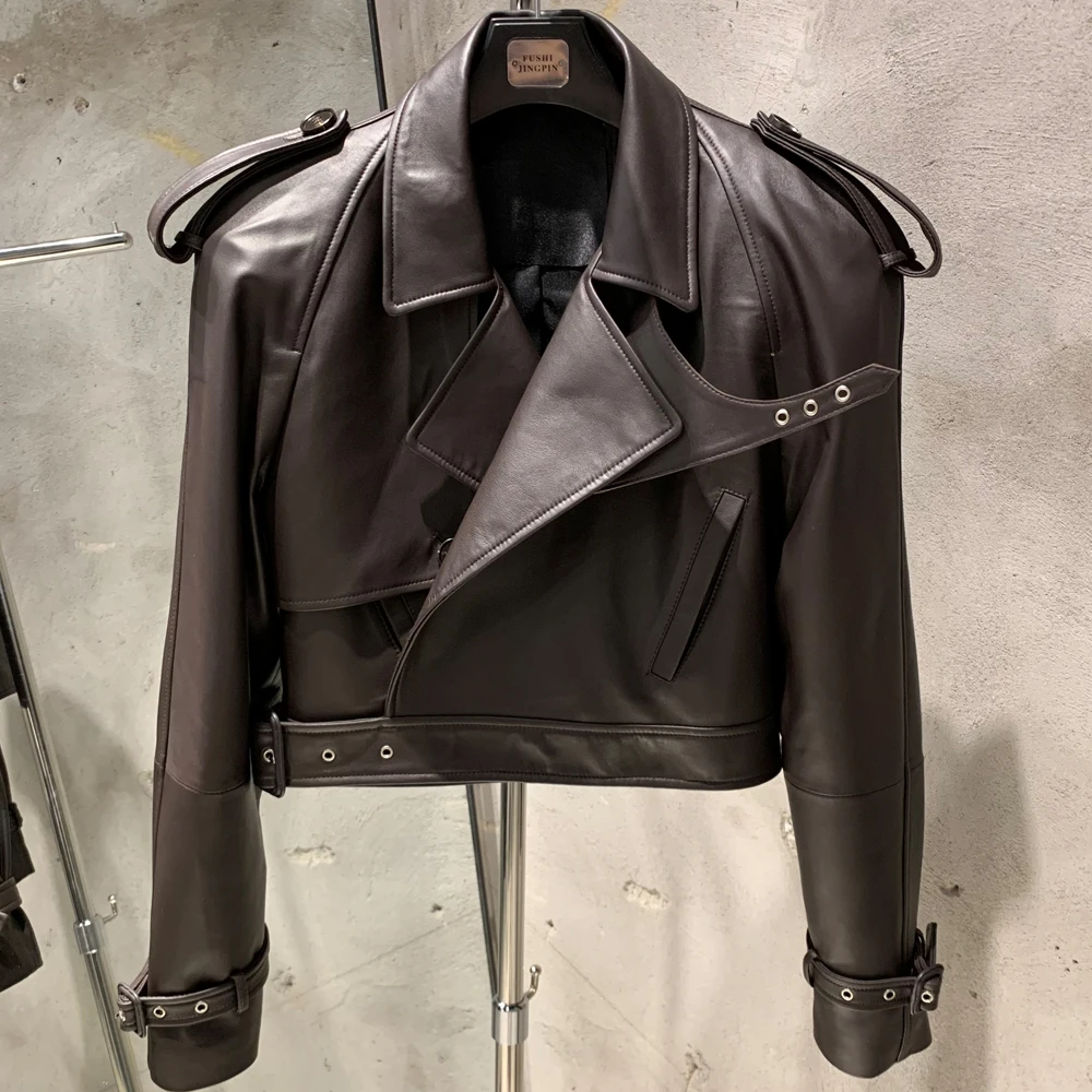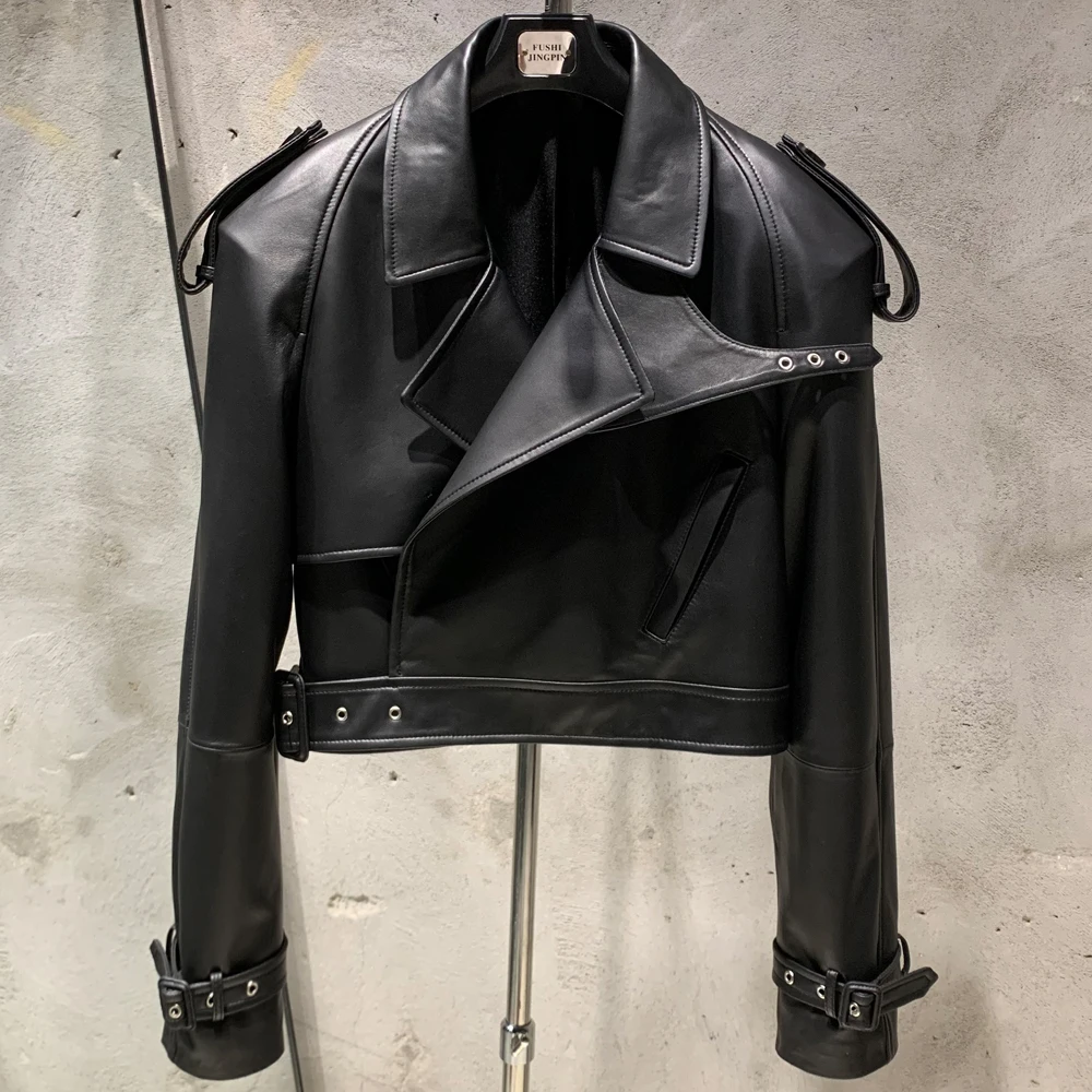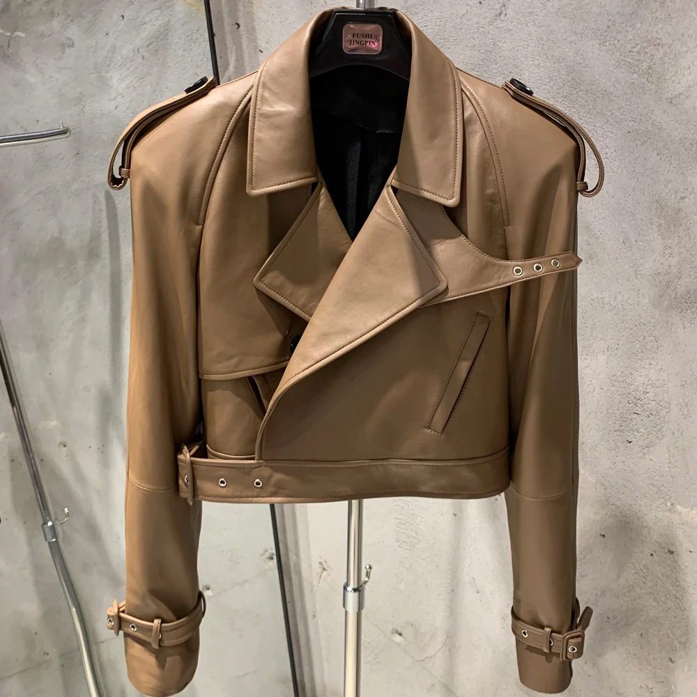 Veste en cuir gaufré pour femme, manteau en cuir de mouton véritable, large initié, hiver, 23012