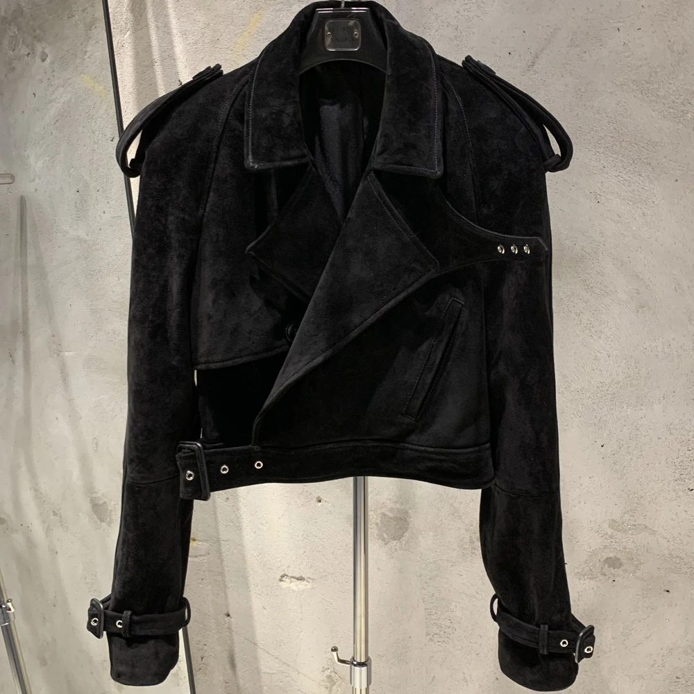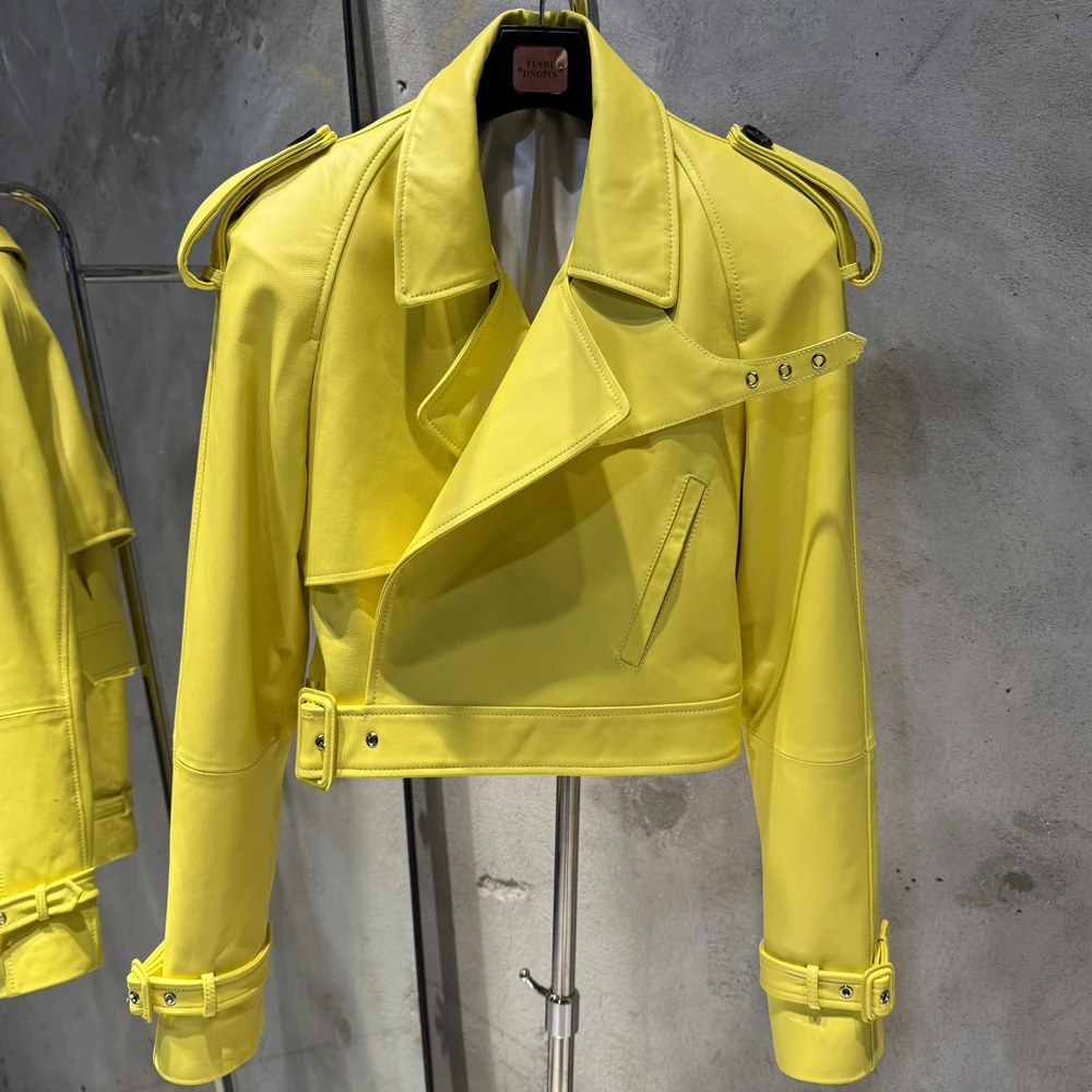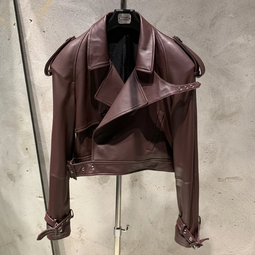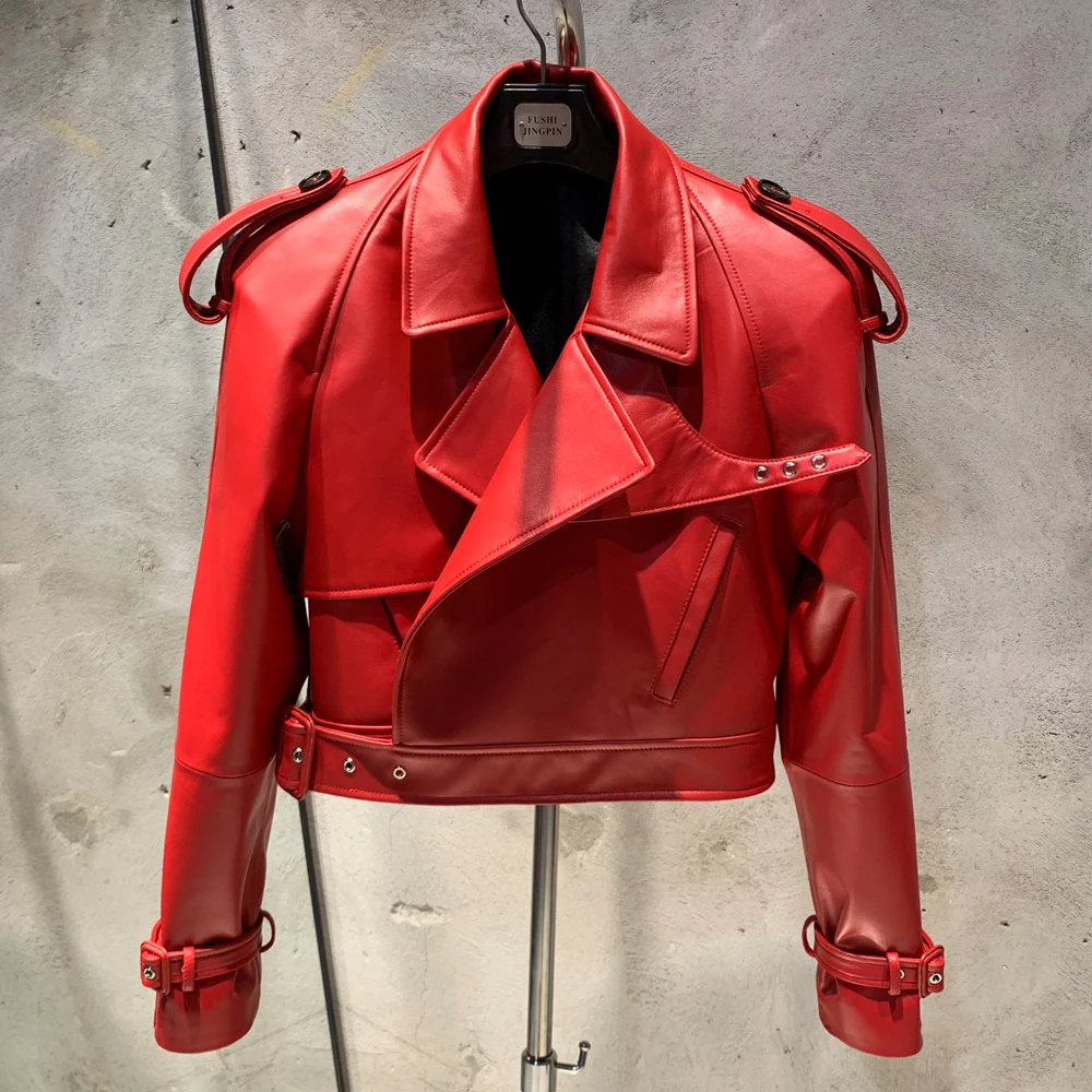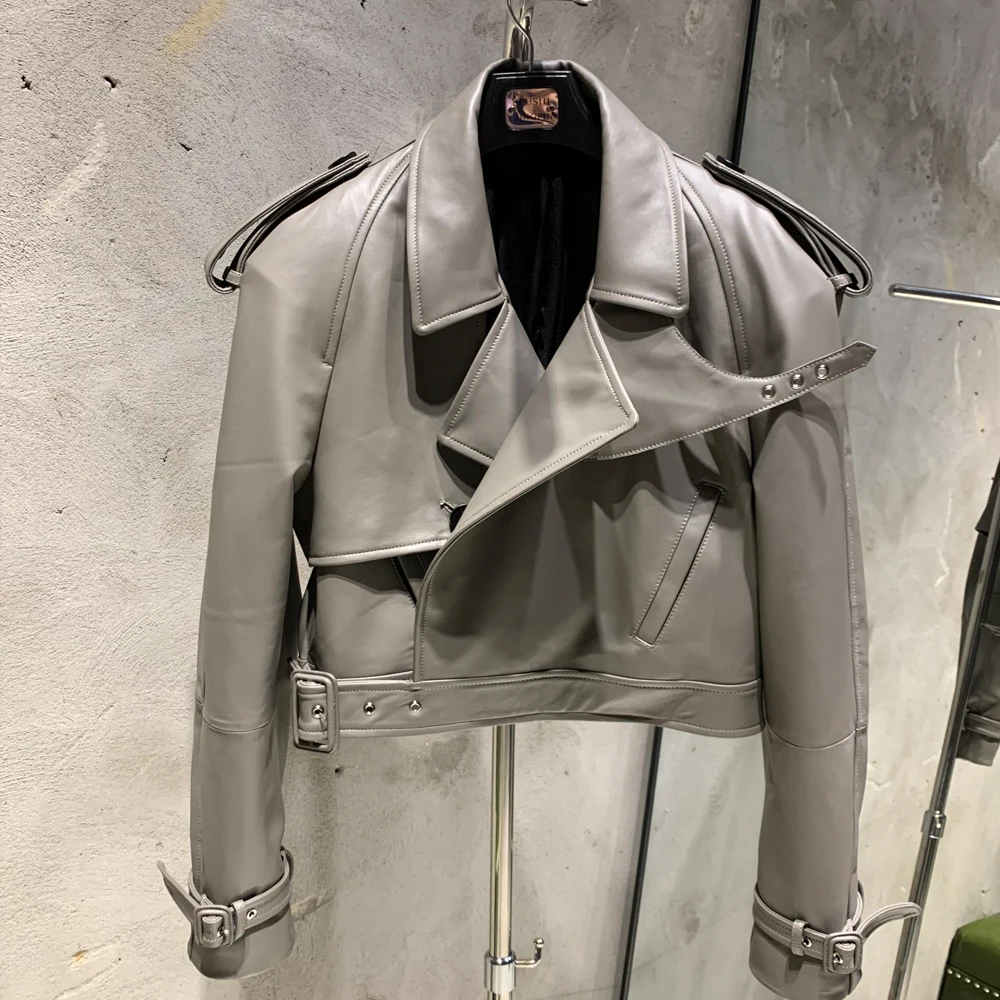 Veste en cuir gaufré pour femme, manteau en cuir de mouton véritable, large initié, hiver, 23012