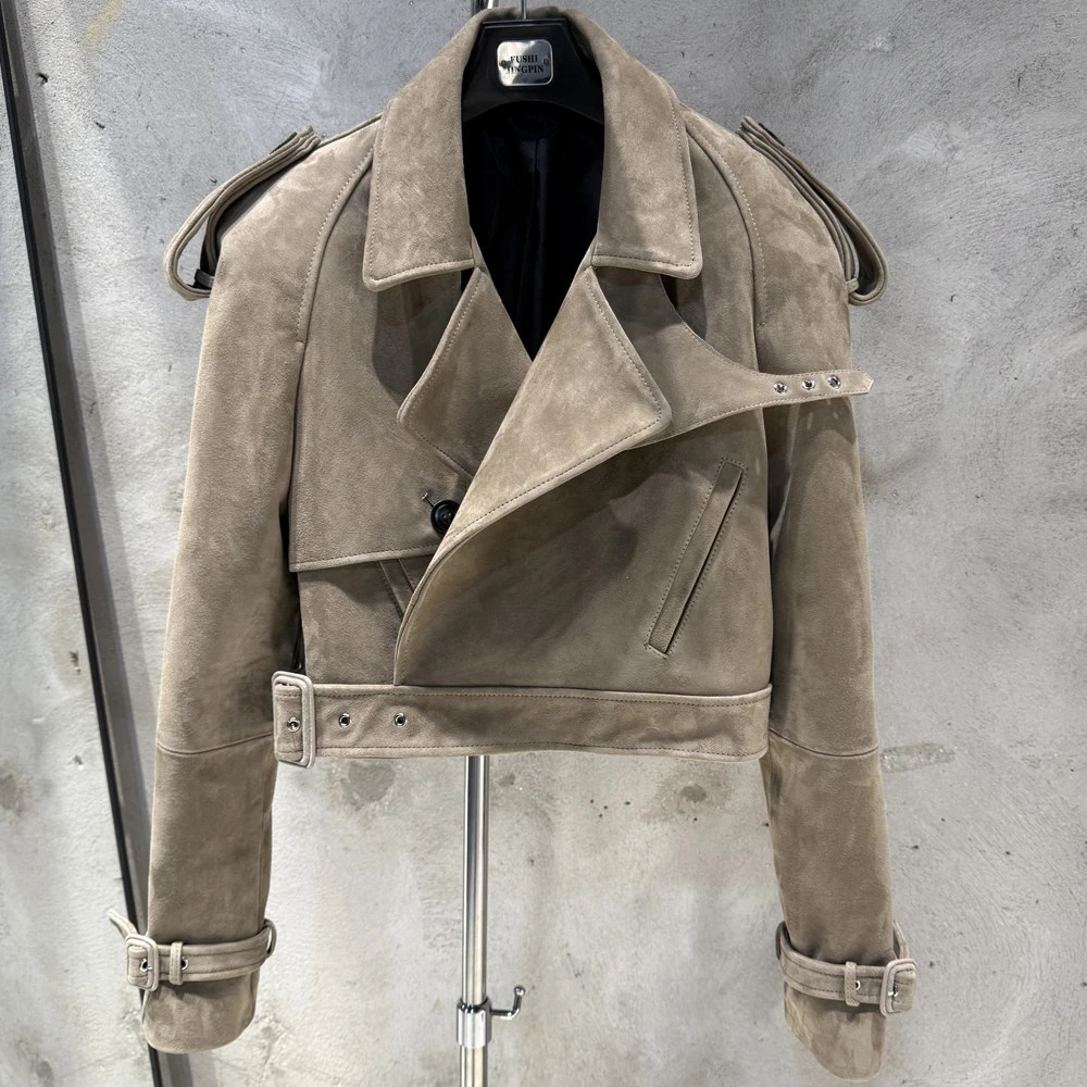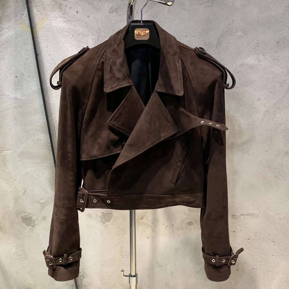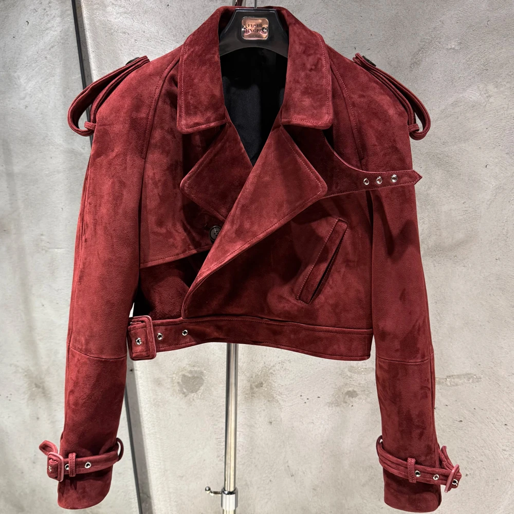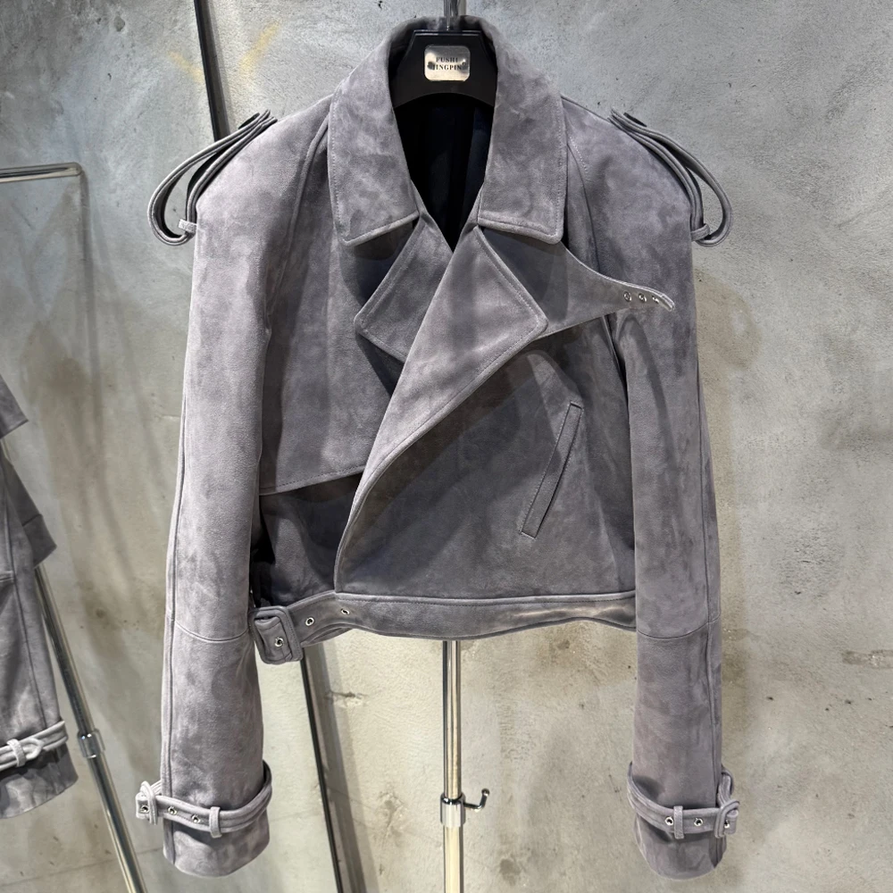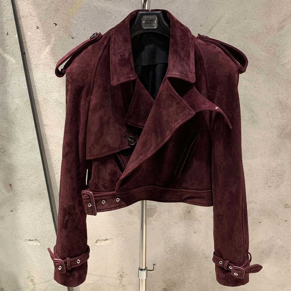 Veste en cuir gaufré pour femme, manteau en cuir de mouton véritable, large initié, hiver, 23012