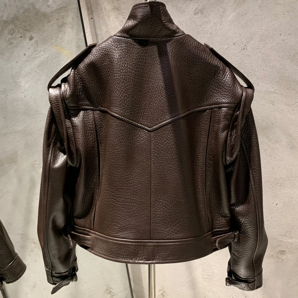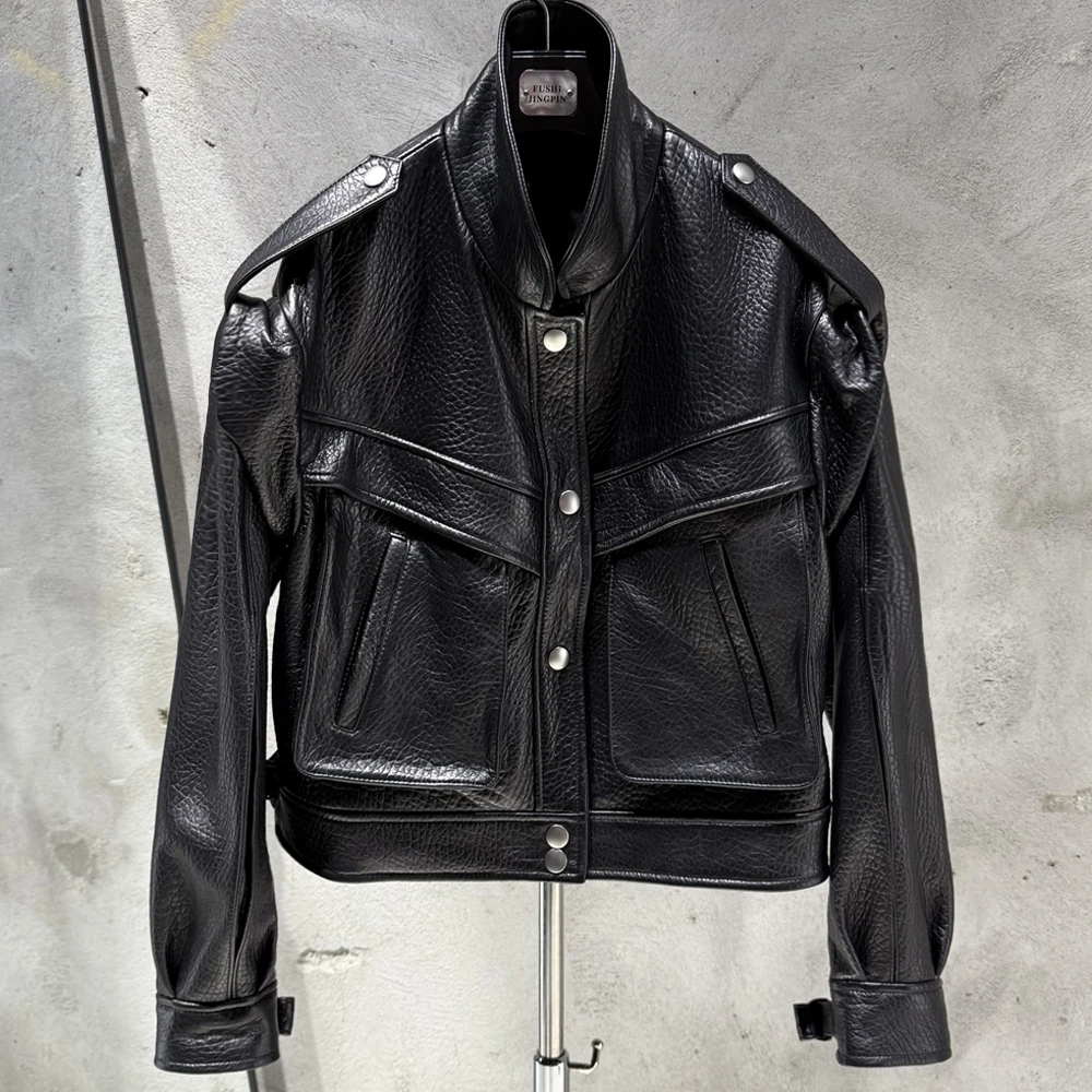 Veste en cuir grainé pour femme, manteau de motard en cuir, manches détachables, bombardier en peau de mouton H021