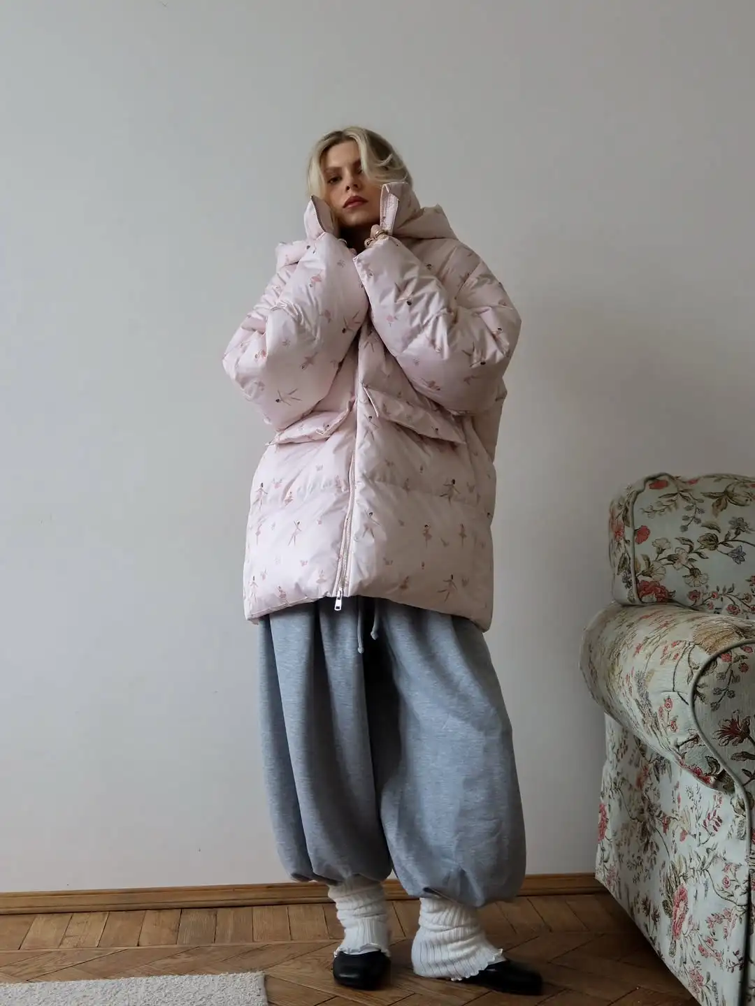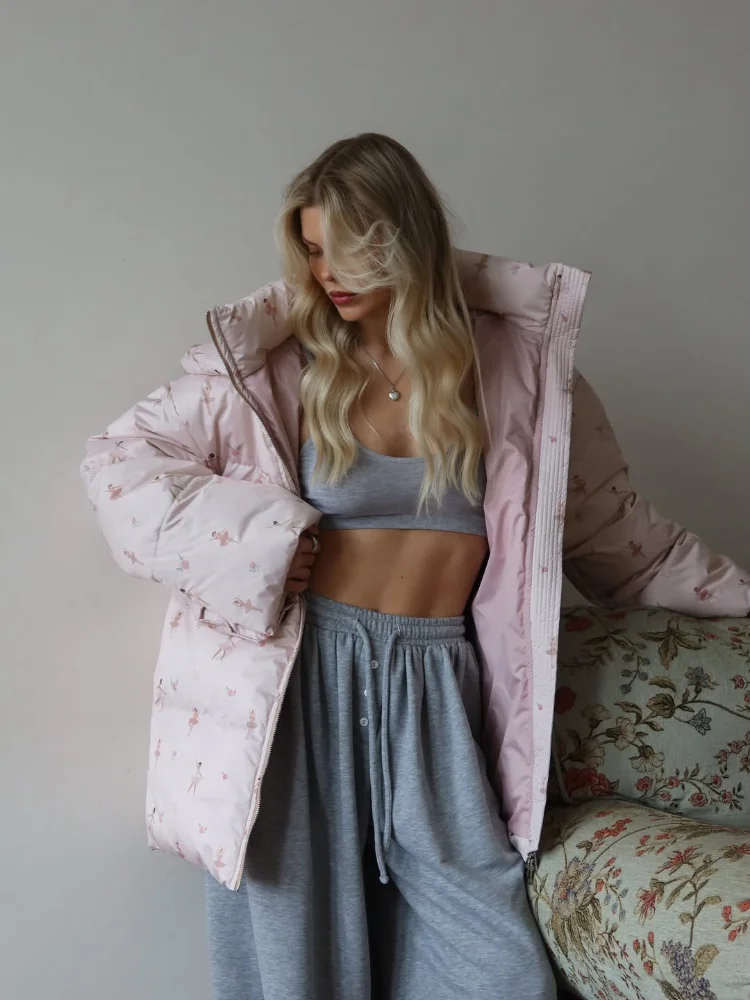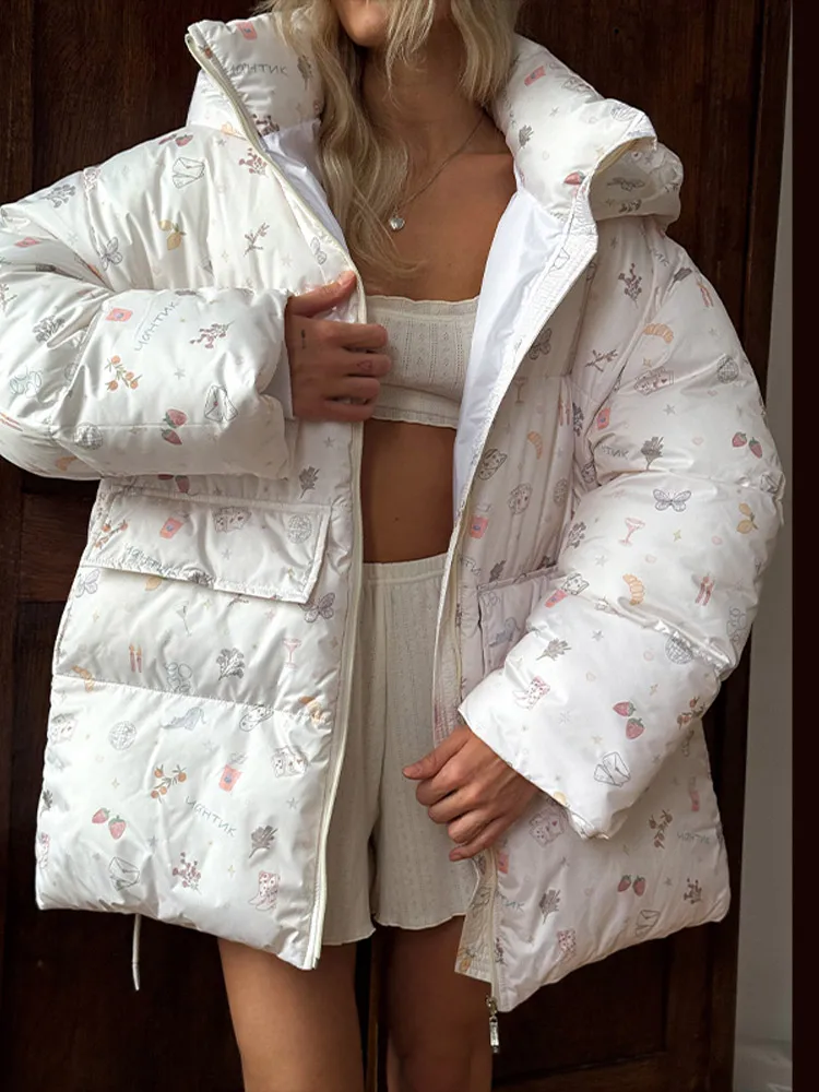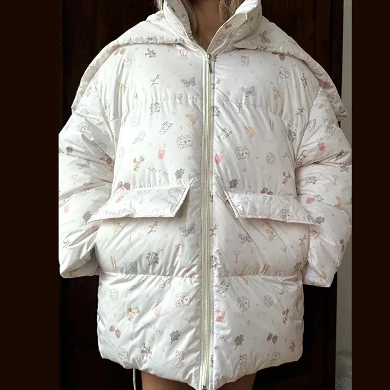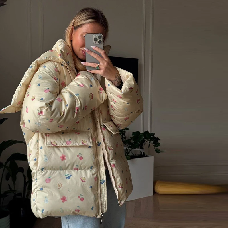 Veste matelassée à imprimé floral avec capuche pour femme, manteau surdimensionné à manches longues avec poches zippées, vêtements d'extérieur d'hiver 2025