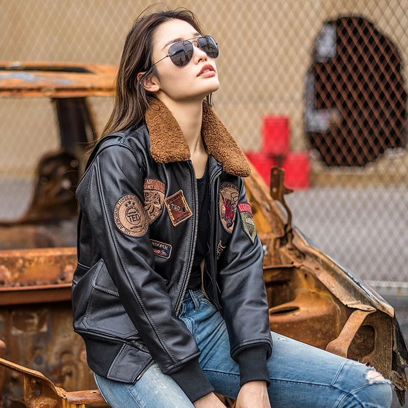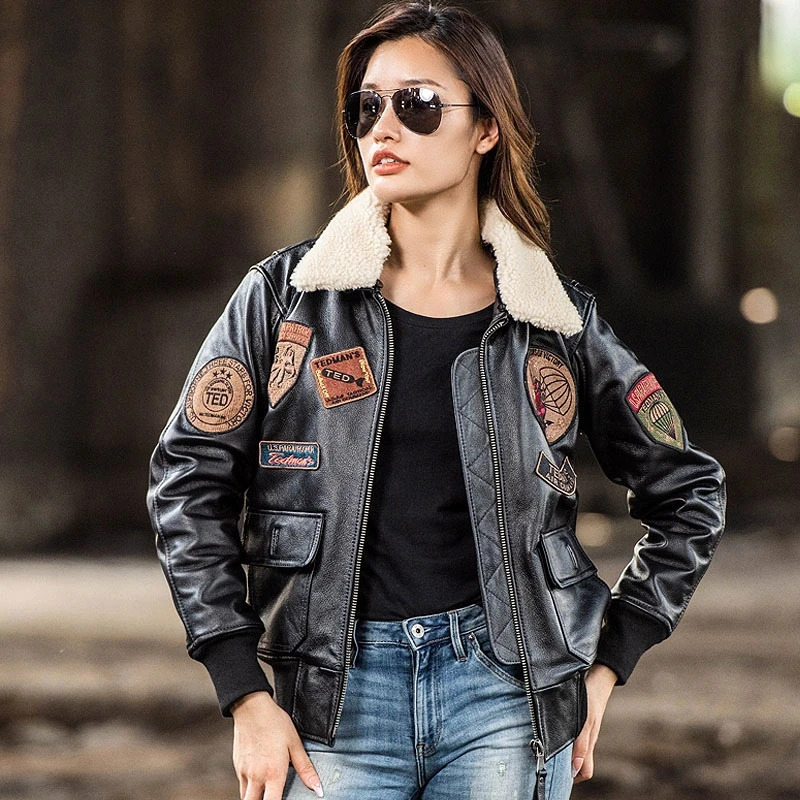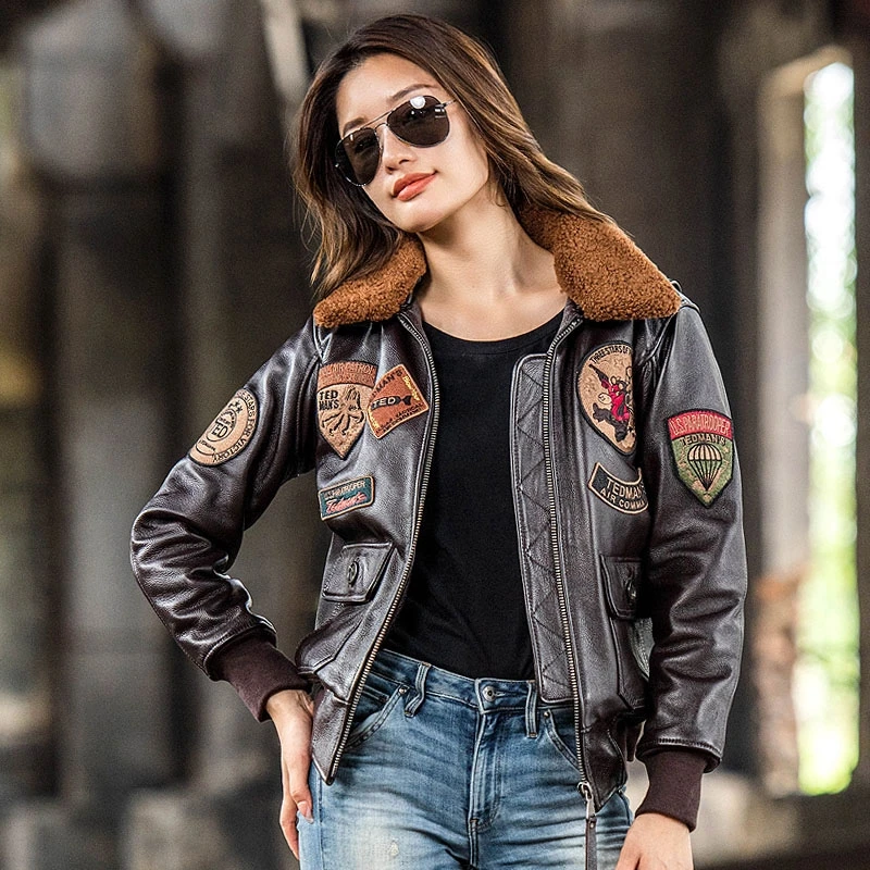 Veste Pilote en Cuir group pour Femme, Marron Foncé G1, Style Militaire, Cuir de Vache Naturel, Combinaison d'Aviation, Automne, Grande Taille 3XL