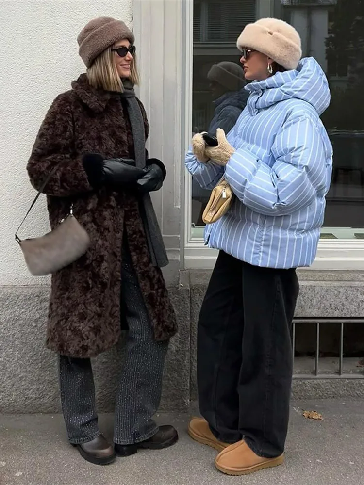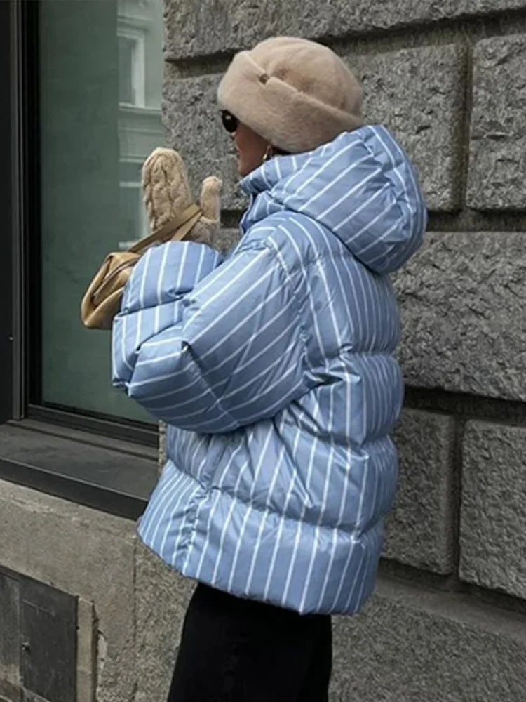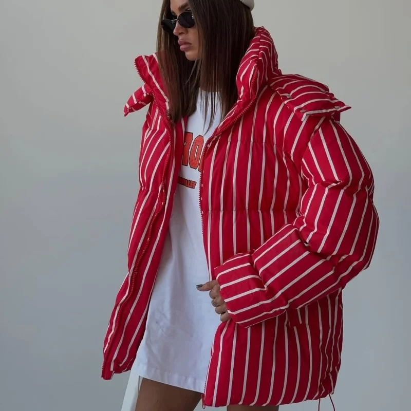 Vestes d'hiver en coton à capuche pour femmes, Parkas à rayures épaisses, Design à la mode, veste à pain décontractée, ample, manteaux à fermeture éclair, Y2k