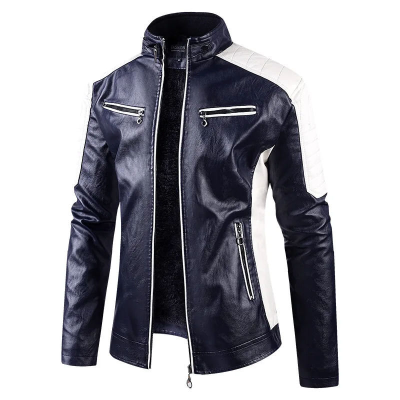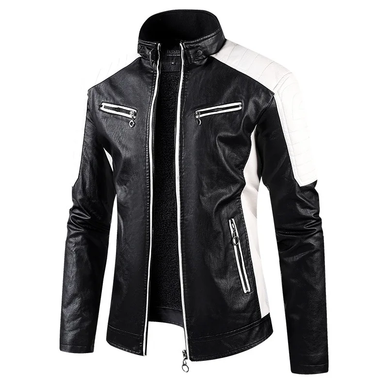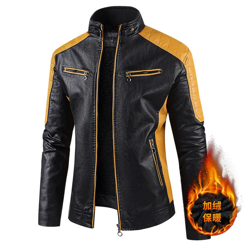 Vestes en cuir de moto pour hommes, col montant, vestes d'hiver sourire, coupe couvertes, cuir PU, haute qualité, mode masculine, vestes décontractées 5