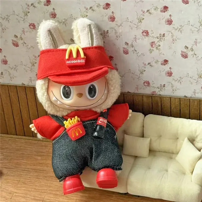 Vêtements de travail pour poupée Labubu, ensemble de chocolats frites et Cola, vêtements à la mode, chaussures à café, vêtements assis, accessoires de série de fête