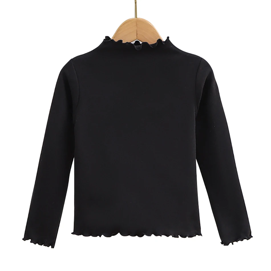 Nom : Vêtements pour enfants, chemise de Base pour filles, pour l'automne et l'hiver, tendance, bord champignon noir, couleur unie, T-shirt à manches longues