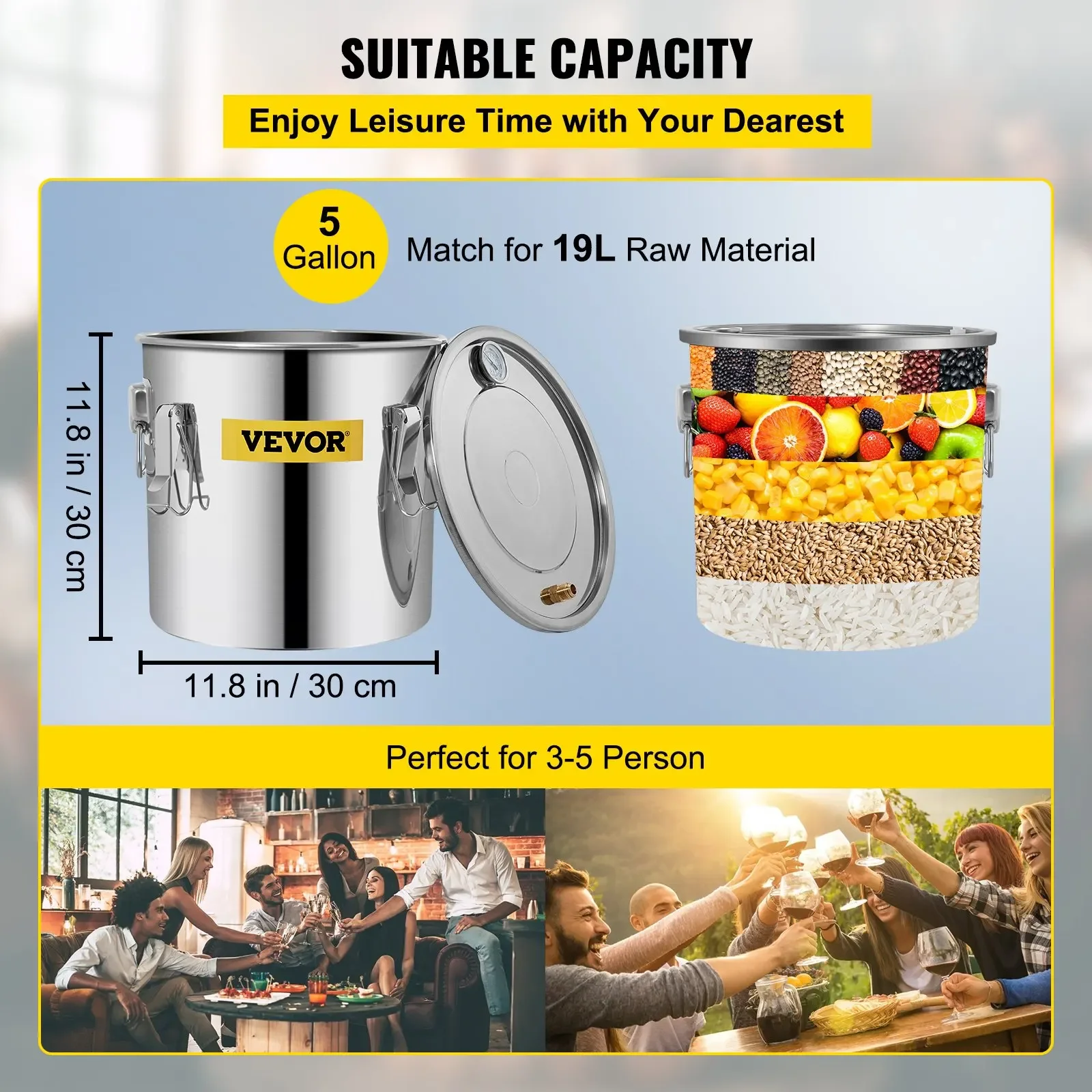 VEVOR distillateur alambique alcool Moonshine 5 Gal bricolage toujours en acier inoxydable cuivre maison brassage eau vin huile essentielle Kit de brassage