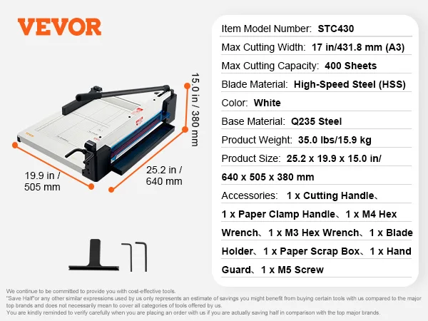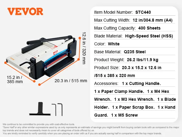 Coupez divers matériaux : dites adieu aux coupes lentes et fastidieuses.Ce coupe-papier industriel peut couper sans effort jusqu'à 400 feuilles à la fois, avec une longueur de coupe allant jusqu'à 12 pouces.Qu'il s'agisse de papier, de photos ou de cartes, il fera le travail rapidement et précisément.