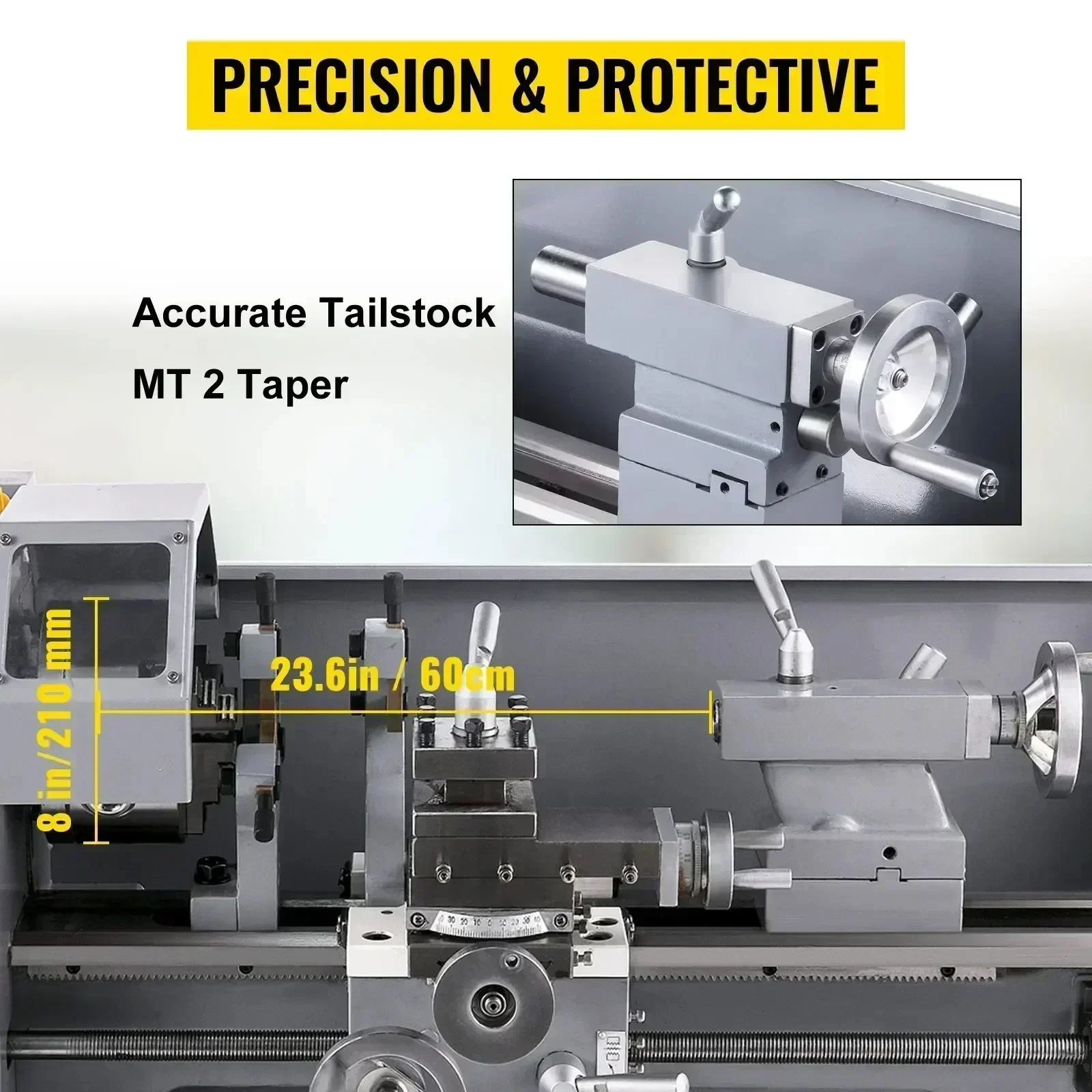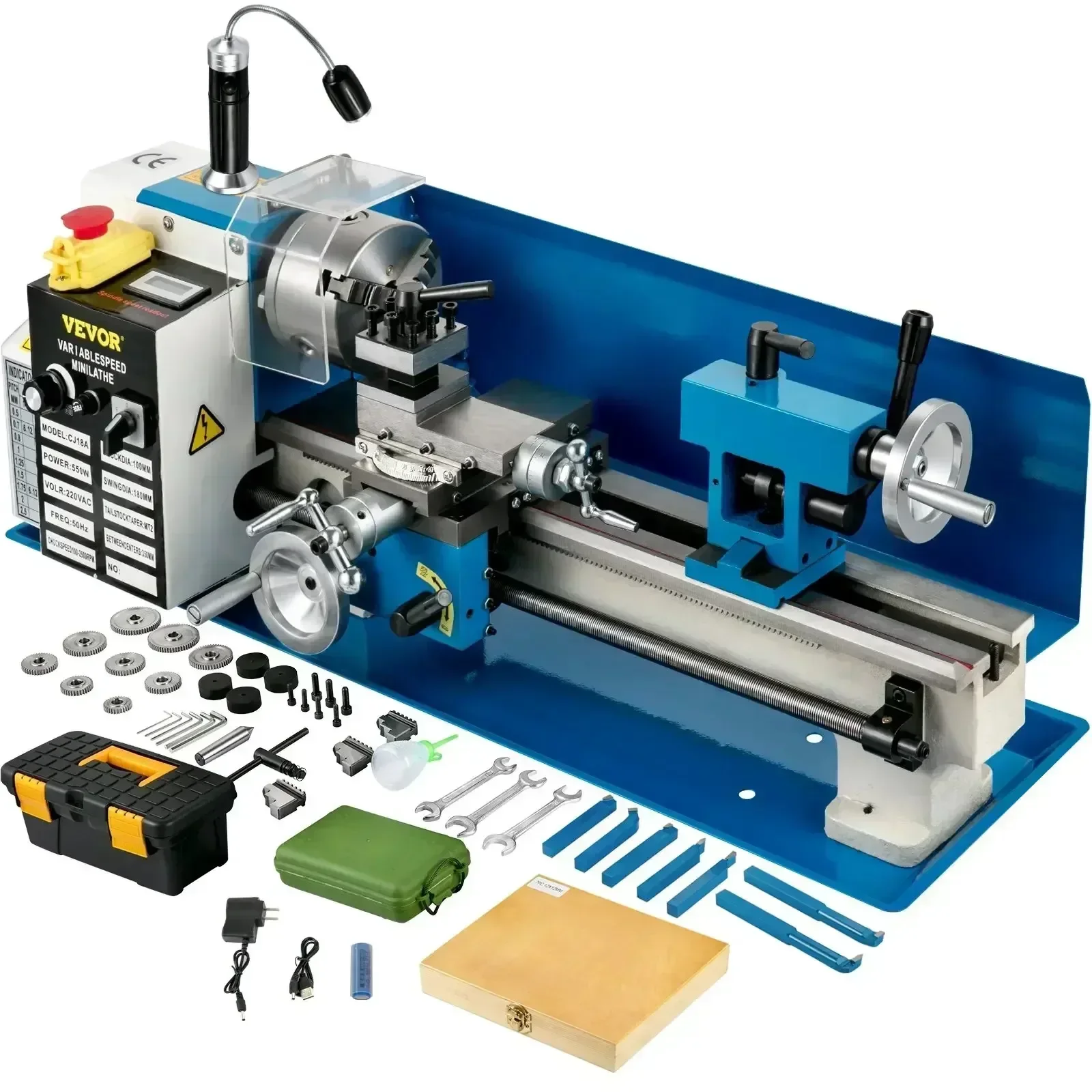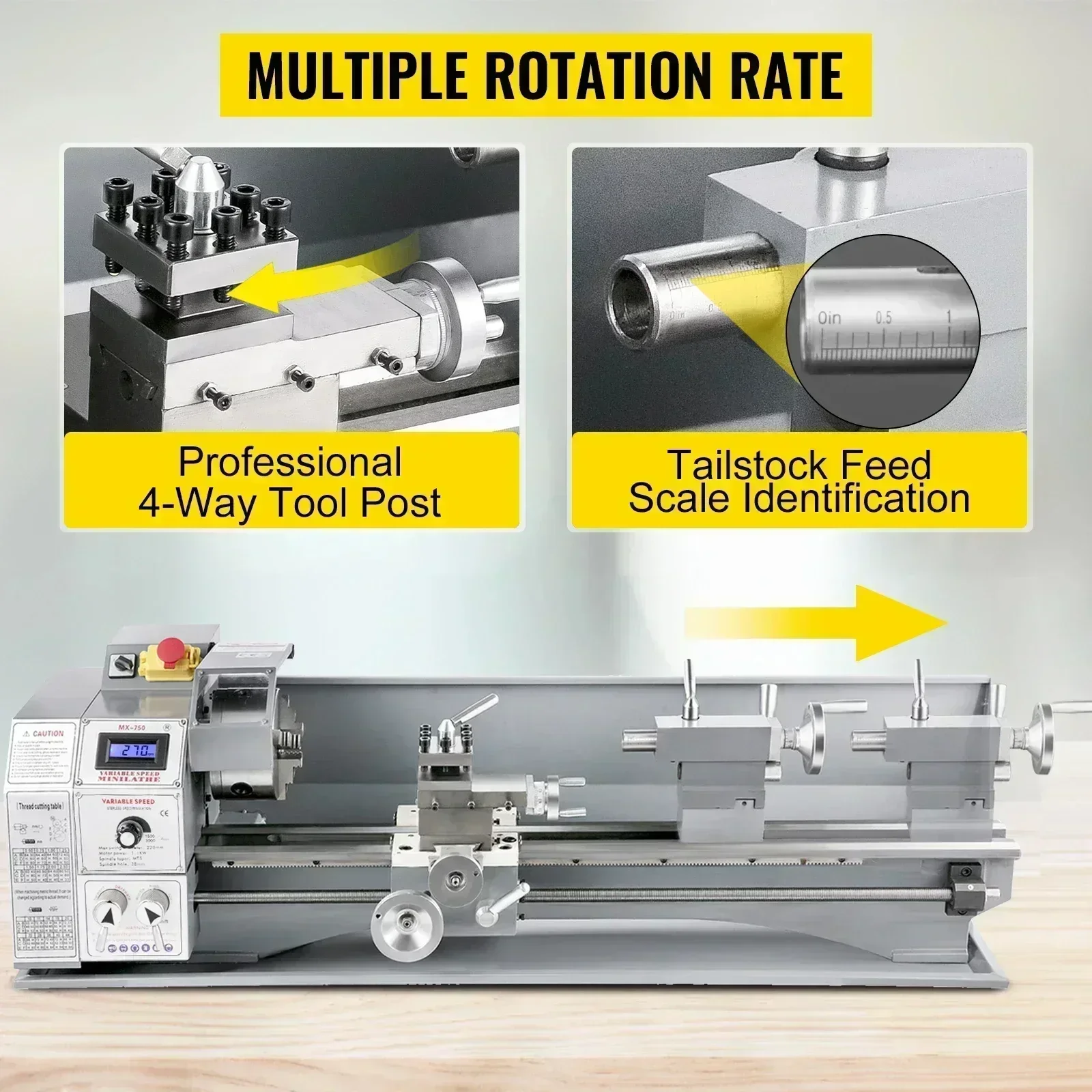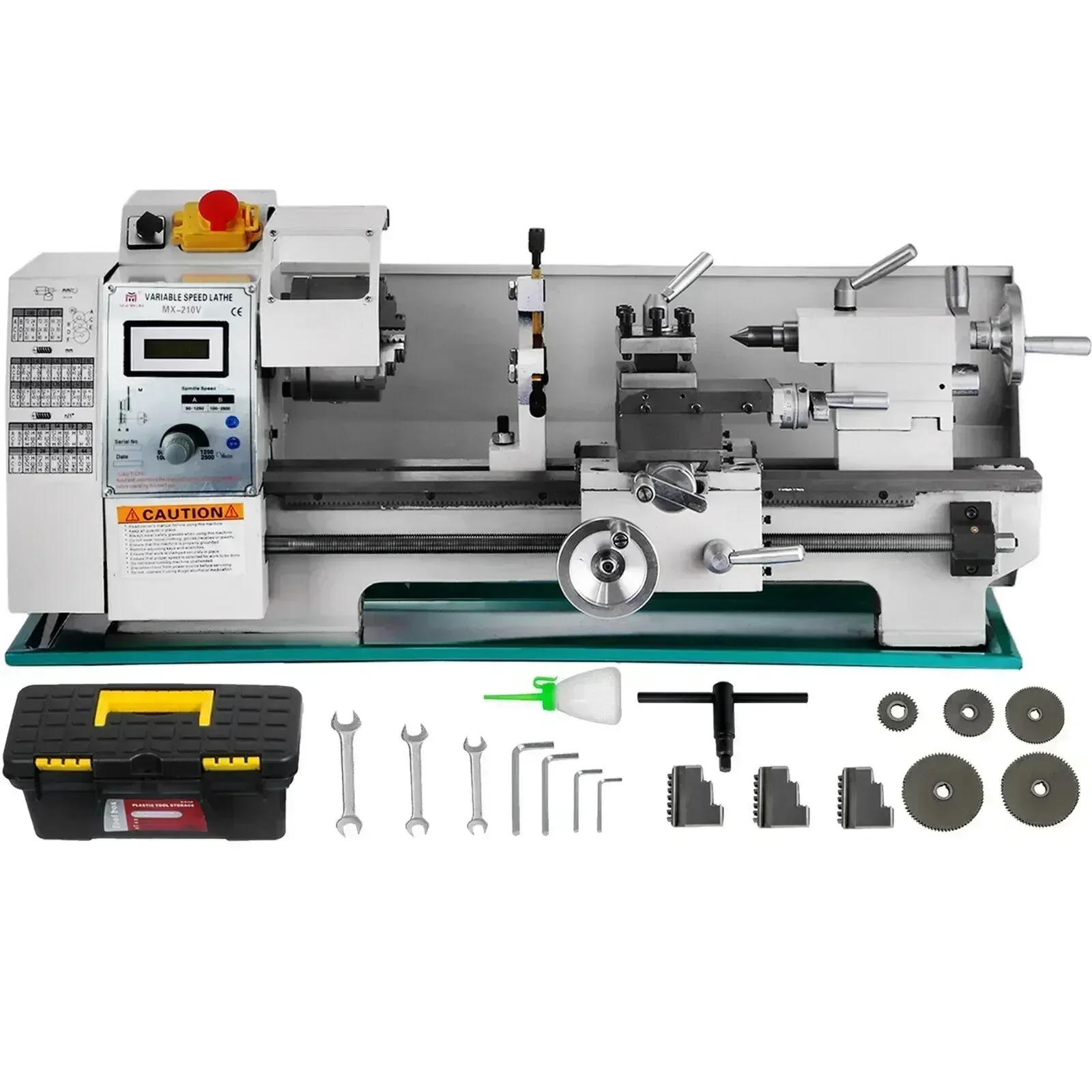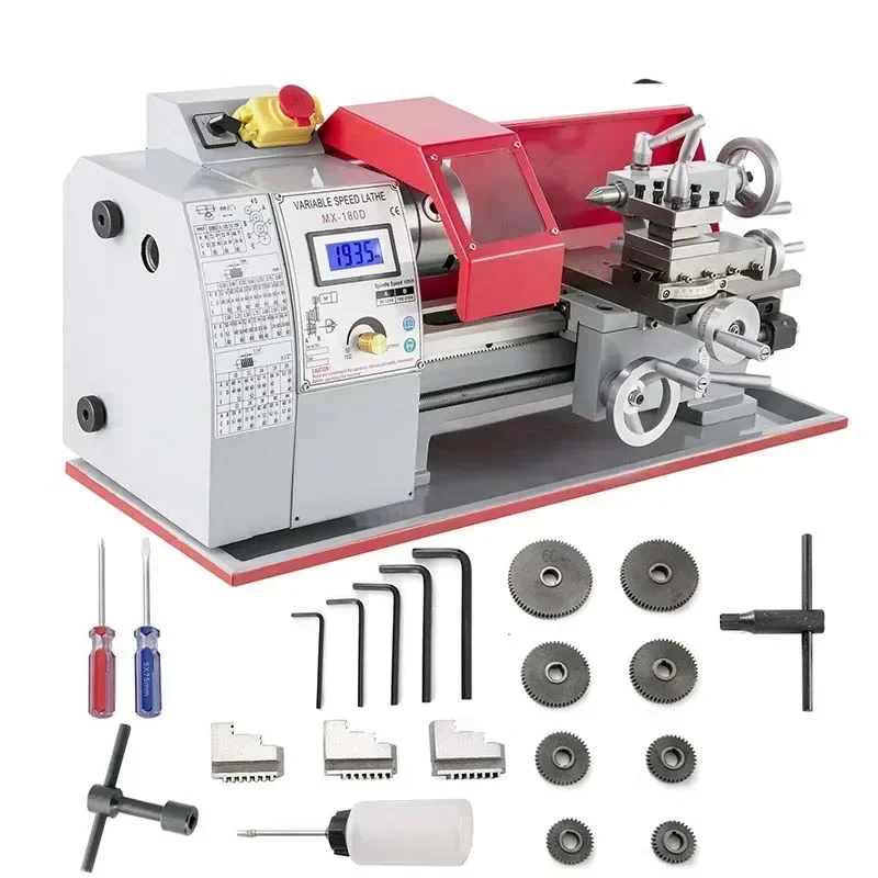 Mini tour métallique 7" x 14" / 180 x 350 mm 550 W - Ensemble 1 (Version mise à jour : engrenages métalliques ; volant en aluminium ; écran d'affichage numérique)