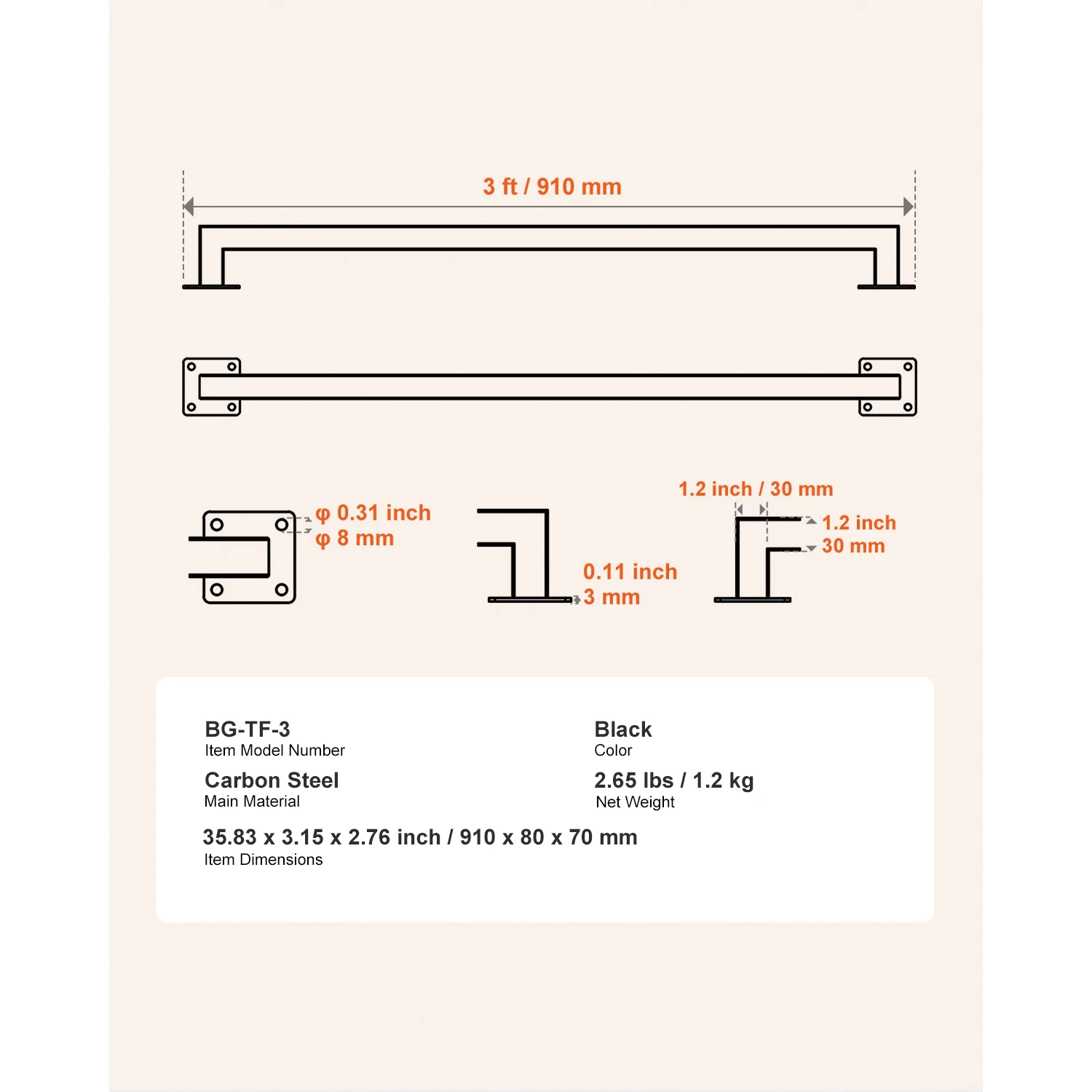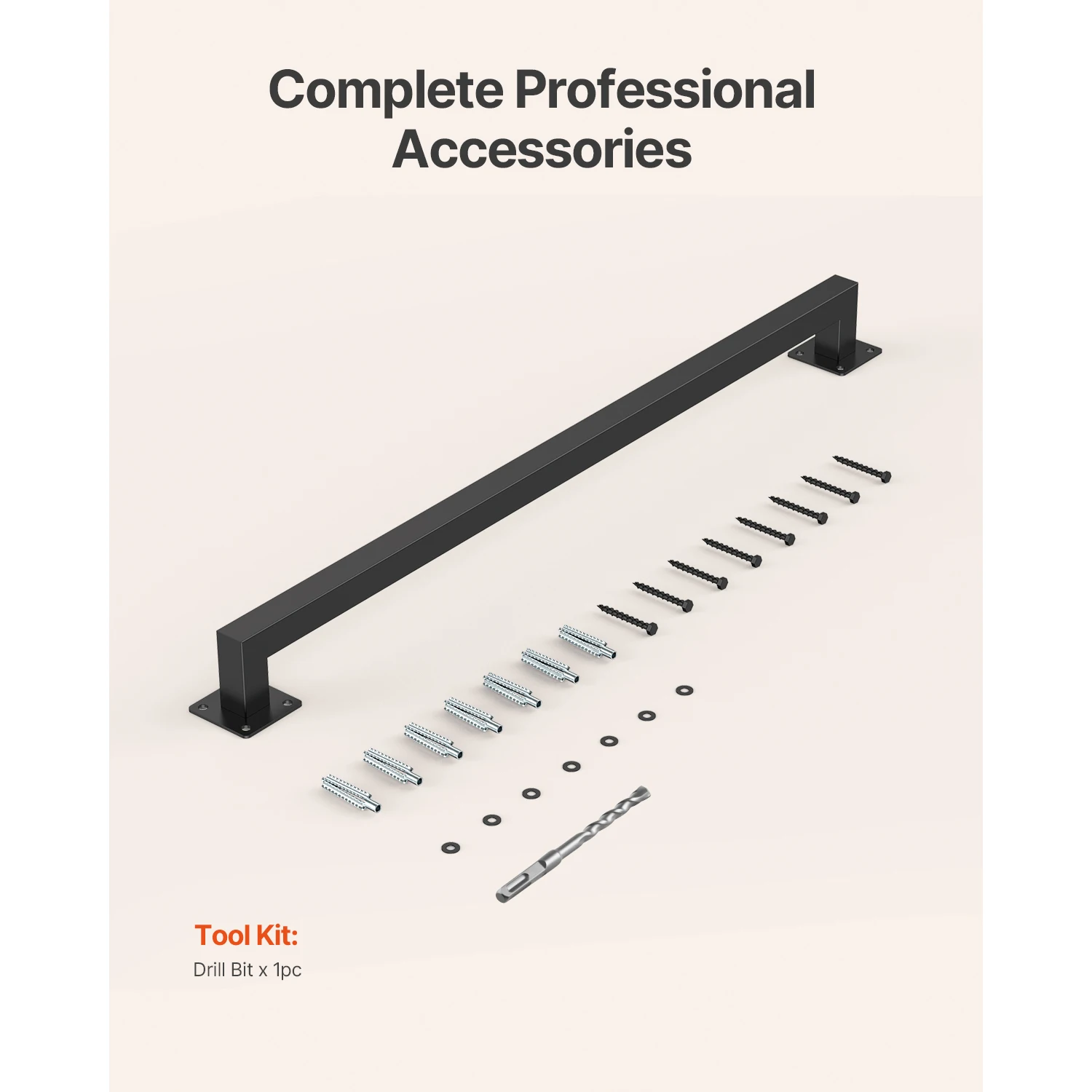 Rampes murales fiables pour une utilisation domestique polyvalente Notre rampe murale offre un support durable et stable pour une utilisation fiable des escaliers. Elle peut également être installée dans les cuisines, les placards et les salons pour servir de support pratique à la vaisselle, aux vêtements et aux rideaux. Features & Details Construction robuste en acier au carbone : Fabriquée en acier au carbone robuste et de haute qualité, cette rampe d'escalier murale est antidérapante. Elle offre une prise sûre et confortable pour tous les membres de la famille Capacité de charge de 113,4 kg : Cette rampe d'escalier murale offre un soutien solide et une capacité de charge allant jusqu'à 113,4 kg. Sa base robuste et ses matériaux robustes assurent sa stabilité, idéale pour supporter divers objets Compatible avec de nombreux types de murs : Notre support mural pour rampe d'escalier est conçu pour être compatible avec les murs en bois, en brique ou en béton. Nous recommandons d'installer la rampe à environ 900 mm (35 po) du sol Options d'installation flexibles : La main courante d'escalier est personnalisable selon vos besoins. Vous pouvez facilement ajuster sa longueur en raccordant ou en coupant le tube de la rampe pour l'adapter à votre escalier, qu'il soit droit ou courbe, pour une adaptation parfaite à toutes les configurations Accessoires premium complets : Le kit comprend tous les outils d'installation essentiels. Aucun achat supplémentaire n'est requis ; suivez simplement les instructions pour installer rapidement votre rampe d'escalier murale dès réception