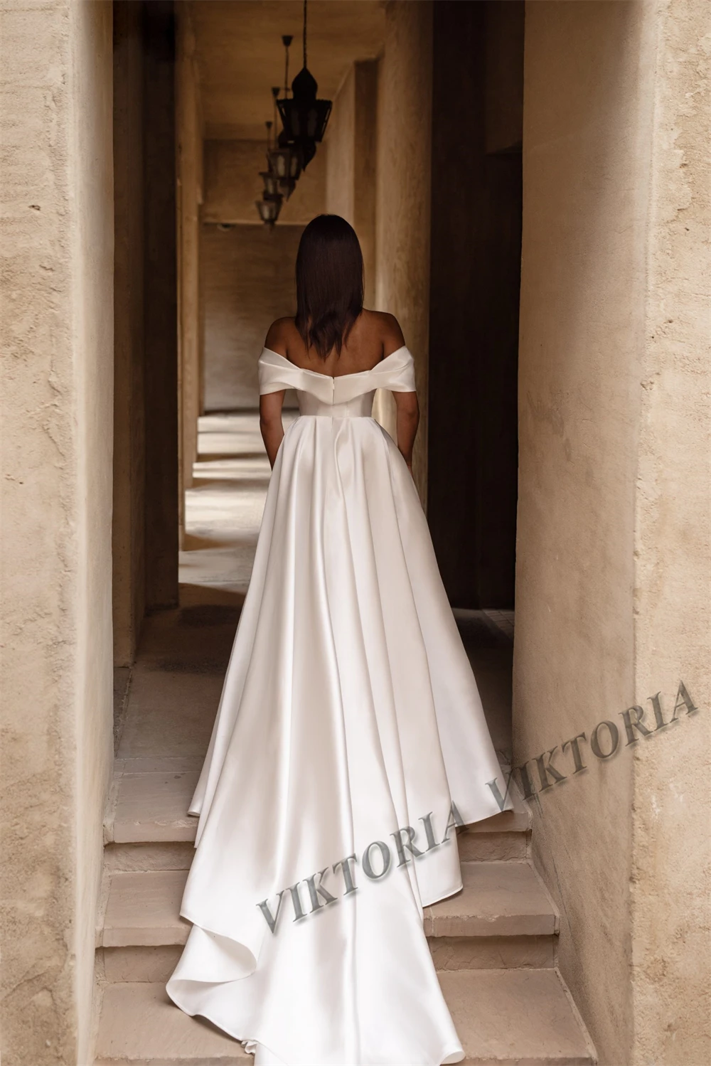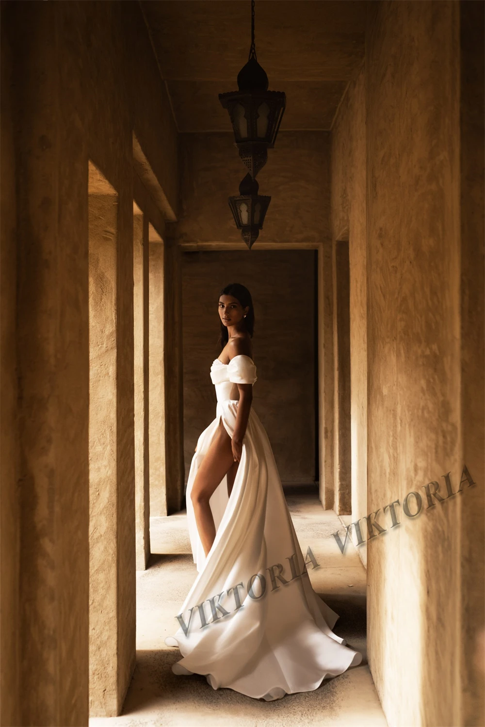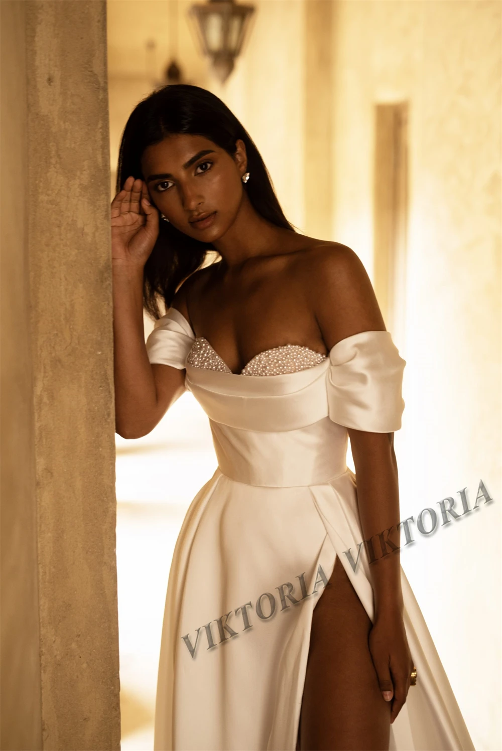VIKTORIA-Robe de Mariée Classique en Satin avec Fente Latérale, Ligne A, Perles, Personnalisée, pour Femme
