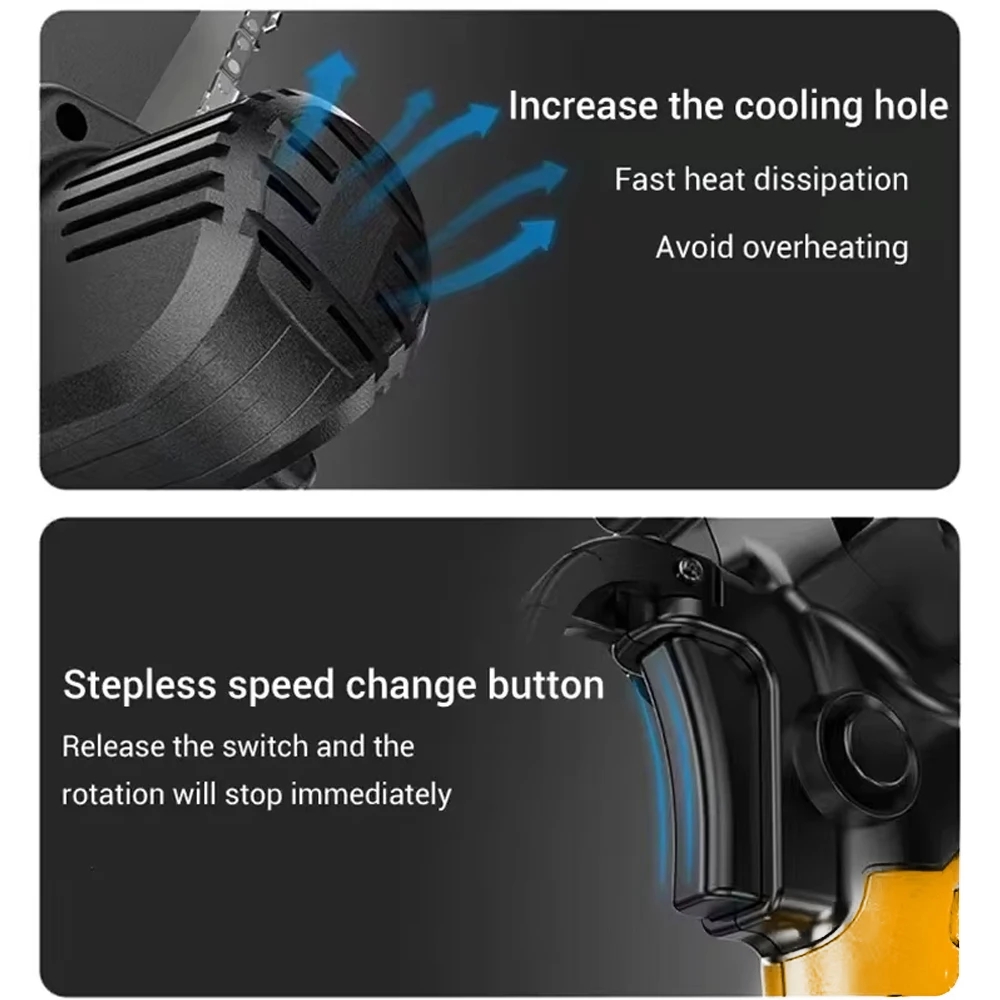 Spécification : Longueur de la plaque de guidage : 6 pouces Vitesse de la chane : 8 m/s Tension : 21 V Puissance : 3000W Chane : Ajustement rapide Matériau : chane en acier métallique. Modèle facultatif : pas de batterie Caractéristiques : -Petite taille : léger et portable, peut être tenu d'une seule main. - Chane de guide de haute qualité : trempe profonde, plus résistante à l'usure, coupe nette. - Chane tranchante et solide : chane en alliage de haute qualité, résistante à l'usure et durable, sciage rapide et fluide sans blocage. - Large application : cette tronçonneuse électrique a un large éventail d'utilisations, peut être utilisée pour la coupe forestière, la coupe de bois, l'élagage des branches, etc. - Conception portable : poignée en caoutchouc souple, antidérapante et absorbant la transpiration ; conception de déflecteur élargi, pour empêcher les copeaux de bois d'éclabousser pendant la coupe ; conception de trou de dissipation thermique, ventilation et dissipation thermique efficaces. Emballage inclus: Modèle 1 : Remarque : pas de batterie, pas de chargeur Scie à chane électrique 1x6 pouces 1 x Tournevis 1 x Clé à molette