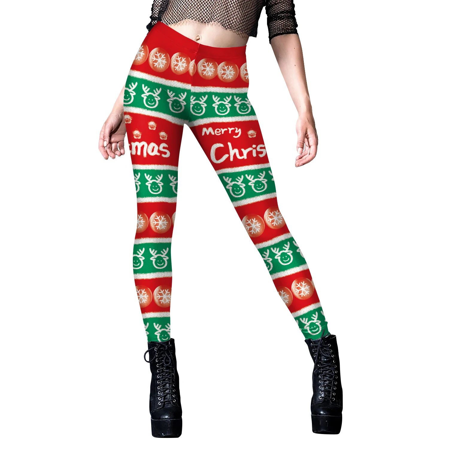 VIP FASHION-Leggings de Noël College en 3D pour femmes, pantalons d'entraînement skinny extensibles, motif flocon de neige, ceinture cosplay, cadeaux de Noël