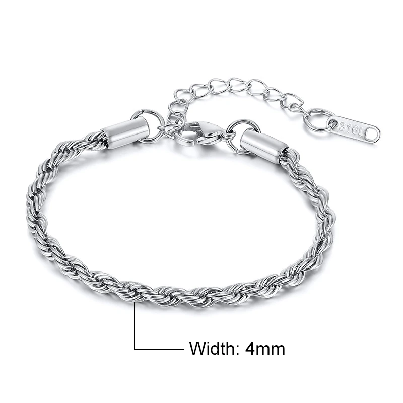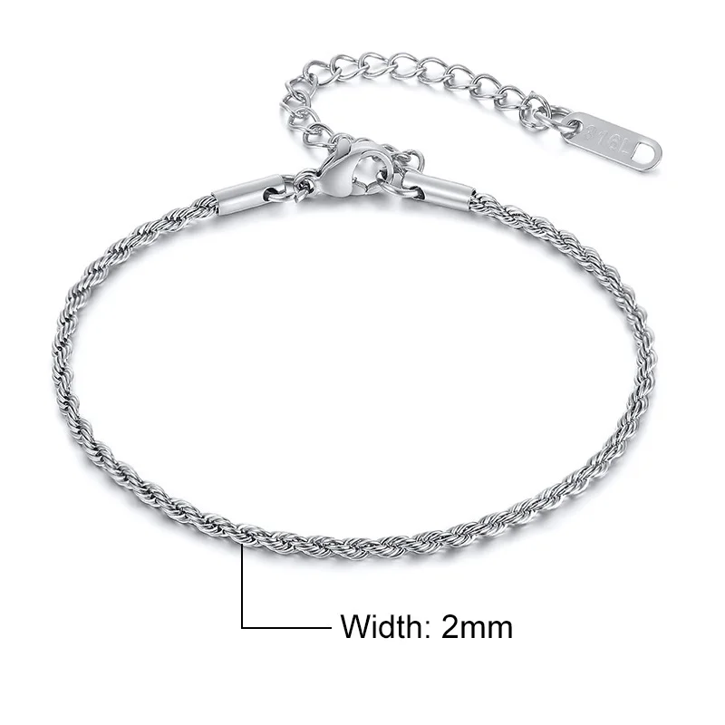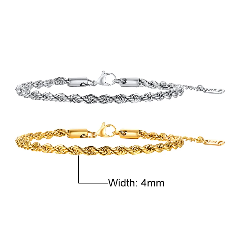 Vnox – Bracelets de base 2/3/4/5mm en acier inoxydable, chaîne à corde torsadée pour hommes et femmes, poignet bijoux cadeaux de noël, longueur réglable