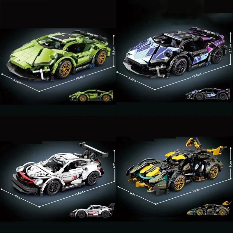 Voiture de Sport de course technique, 600 + pièces, blocs de construction, véhicule de vitesse mécanique, supercar, Puzzle en brique, jouets, cadeau pour enfant et adulte