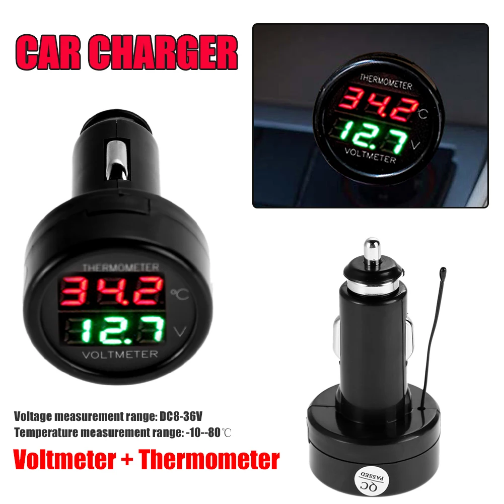 Voltmètre de voiture numérique 12V 24V, thermomètre, allume-cigare, Style 2 en 1, moniteur de batterie, compteur de tension et de température