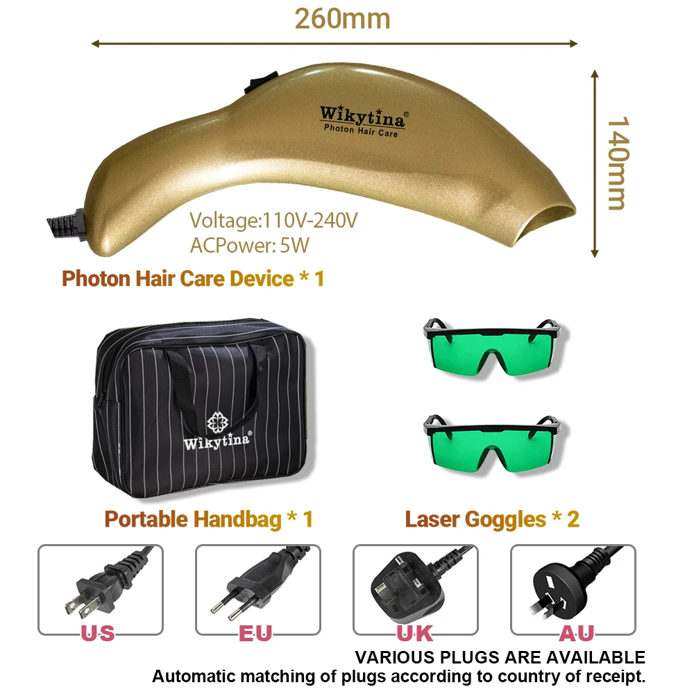Wikytina Photon Appareil domestique pour la croissance des cheveux - Anti-chute de cheveux Régénération des follicules Thérapie à la lumière rouge Santé du cuir chevelu