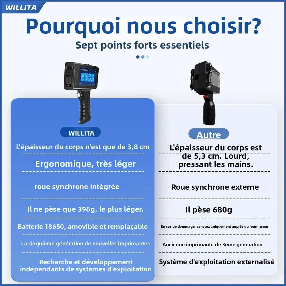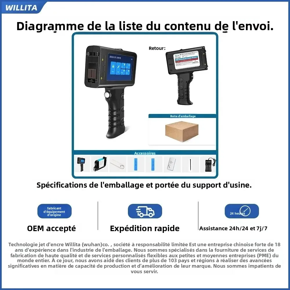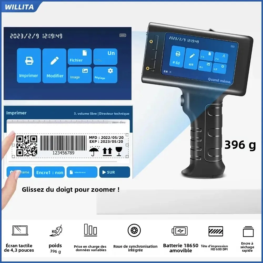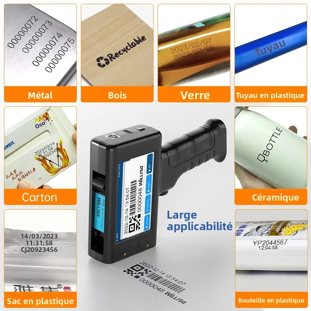 WILLITA L1 – imprimante à jet d'encre Portable 12.7mm, Machine de marquage, barre QR, Code de lot, Date, numéro, Logo, Date d'expiration, étiquette, Stock ue
