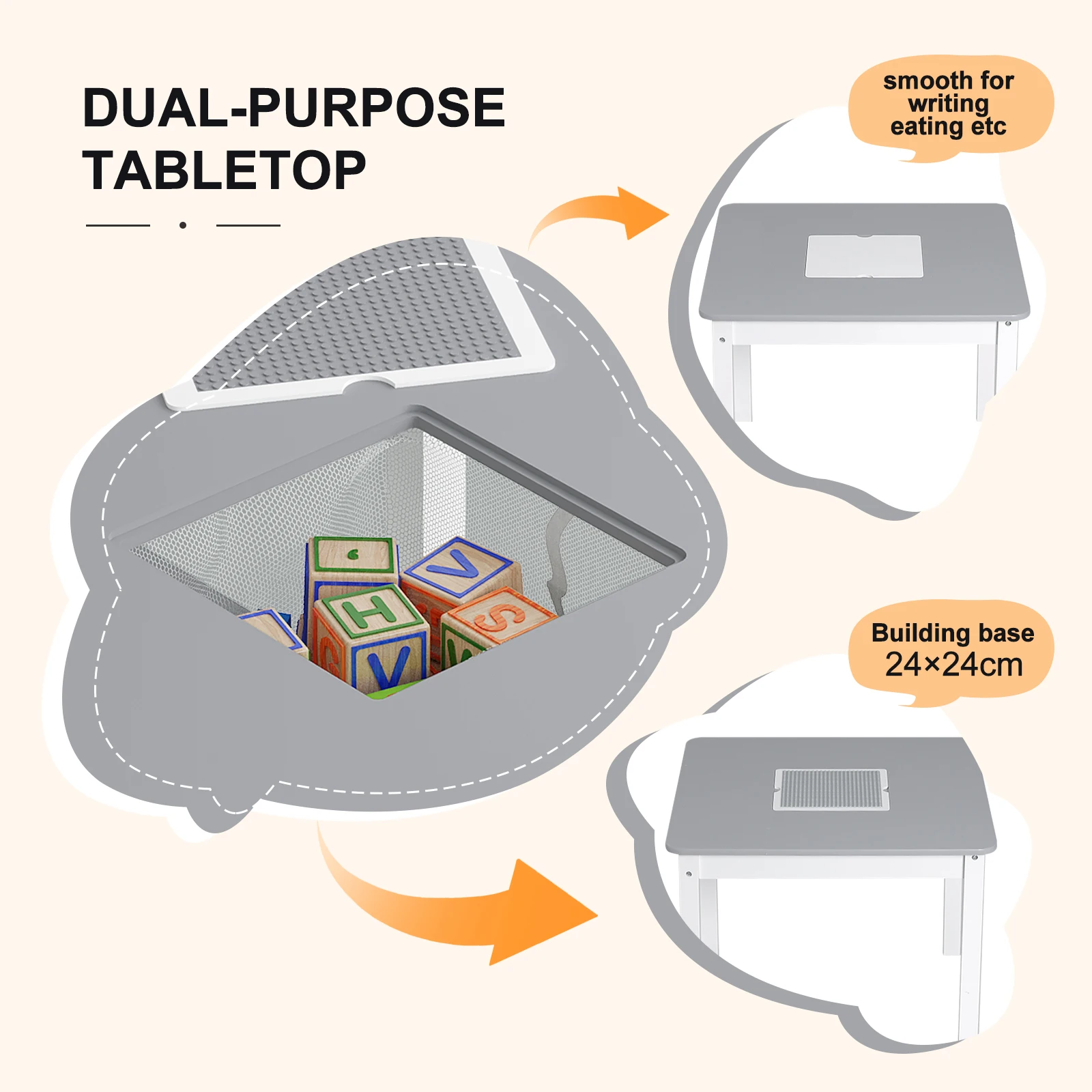 Spécifications techniques Matériel: P2 grade MDF Dimensions: table: 60x48x60 cm, chaise: 28x53x28 cm Capacité de charge: table: 20 kg, chaise: 50 kg, sac en filet: 2 kg Caractéristiques UN ENSEMBLE: 1 table et 2 chaises pour enfants offrent aux enfants leur propre territoire o ils peuvent peindre, manger et jouer. La table pour enfants avec des chaises convient aux chambres d'enfants, aux jardins d'enfants, aux salles de jeux, etc. DESSUS DE TABLE POLYVALENT: Au milieu se trouve une plaque de base réversible (23x23cm) pour les grands blocs, qui peut cultiver la capacité pratique des enfants et laisser libre cours à leur imagination. Sur l'autre côté plat, les enfants peuvent peindre, écrire TABLE POUR ENFANTS AVEC RANGEMENT: Il y a une pochette en filet sous la plaque de construction pour le rangement. Après avoir joué, les enfants peuvent y mettre leurs objets pour garder la pièce bien rangée et développer une bonne habitude de rangement ROBUSTE ET FACILE NETTOYER: Fabriquée en MDF de qualité P2, la table et les chaises pour enfants sont robustes, durables et écologiques. Leur surface est hydrofuge et facile à nettoyer avec un chiffon humide DTAILS POUR LA SCURIT: Tous les coins de ce siège auto pour enfant sont arrondis afin que les enfants ne se blessent pas en cas de collision. Les poignées crantées permettent de retourner facilement la plaque de base et d'éviter de pincer les doigts Le forfait comprend 1x table d'enfant, 2x chaise d'enfant, 1x notice de montage, 1x set d'accessoires Veuillez noter Toutes les tailles ont été mesurées manuellement. Il peut y avoir une erreur de 2-3cm. La couleur réelle du produit peut être légèrement différente des images ci-dessus en raison des différents paramètres de moniteur et de résolution. Tous les articles décoratifs ne sont pas inclus dans la livraison. Attention Les marchandises n'ont pas pu être livrées aux endroits suivants: Aruba,Bonaire,Curaçao,Sint Maarten (Pays-Bas) Livigno: 23030, 23041 (Italie) 973XX:Franzö sisch-Guayana;987XX:Franzö sisch-Polynesien;971XX:Guadeloupe;972XX:Martinique;976XX:Mayotte;974XX:Réunion;975XX: Saint-Pierre et Miquelon;971XX: Saint-Barthélemy;971XX: St. Martin (France) Jersey, Guernesey, le de Man (Royaume-Uni) les Baléares: 07000-07999, Santa Cruz de Tenerife, Las Palmas, Ceuta, Melilla, Canaries. (Espagne)