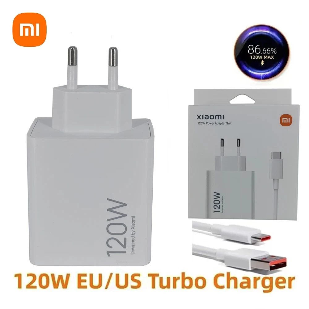 Chargeur mural rapide Original US EU Plug 6A 120W pour Xiaomi 10 Pro 10T 11 Lite 12 12S 12X 12T 13 14 Ultra Redmi Note 10S 11T 12 12T 13 Pro POCO F3 F4 X3 X4 X5 X6 Pro M4 M5 M6 Type-C Câble USB à charge rapide Turbo 1 m 1,5 m 3,3 pieds 4,9 pieds 6,6 pieds