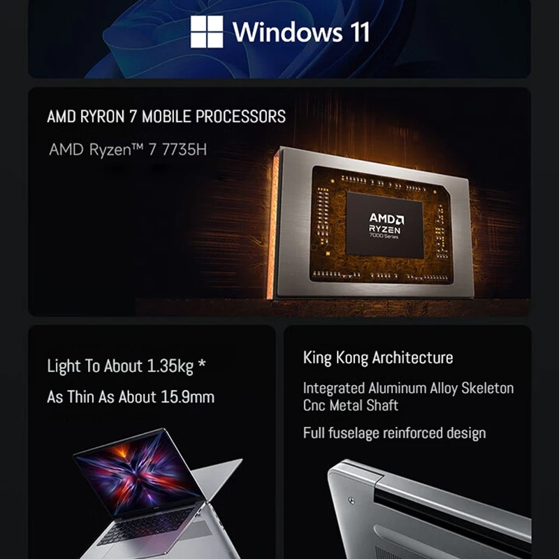 *Veuillez lire avant de passer commande : ☑ propos de la TVA et des droits de douane Expédié depuis la CHINE pour des produits supérieurs à 150 €, sans TVA ni droits de douane : Les pays comprennent : Fédération de Russie, Kazakhstan, Biélorussie, Espagne (les les dépendantes de l'Espagne non incluses), France, Italie, Allemagne, Pologne, Portugal, Pays-Bas, Belgique, Irlande, Lituanie, Hongrie, Autriche, République tchèque, Suède, Estonie., Danemark, Bulgarie, Slovaquie, Slovénie, Finlande, Croatie, Lettonie, Luxembourg, Grèce, Roumanie, tats-UnisCes taxes de pays incluses. 【Choisissez les expéditions de Chine vers les pays de l'UE pour les produits supérieurs à 150 € uniquement】. En raison de notre société, TVA et taxes déjà payées Par DDP vers le département fiscal de l'UE. Après avoir choisi les expéditions en provenance de Chine.En fait.nous expédierons depuis notre entrepôt de l'UE, généralement les produits en stock peuvent être livrés rapidement dans un délai de 1 à 7 jours.(Dépend du stock de produits disponible dans l'entrepôt de l'UE) Excluez les pays ci-dessus, nos prix n'incluent pas les taxes et la TVA. l'exclusion des pays ci-dessus, les articles seront expédiés par DHL ou UPS express.nous ne prenons en charge aucun frais lié aux douanes. Si l'acheteur refuse de payer la taxe, il devra couvrir les frais de retour élevés.si votre adresse appartient à une région éloignée, L'acheteur doit être responsable du paiement des frais DHL pour les régions éloignées d'environ (35 $ à 45 $). ☑ propos des fenêtres et du bureau Tous les ordinateurs portables seront déballés puis préinstallés avec la version anglaise authentique de Windows 11 activée de Microsoft, l'acheteur peut facilement définir lui-même la langue locale préférée.Le logiciel OFFICE sera pré-activé.La langue du logiciel OFFICE sera conforme au système d'exploitation WINDOWS ☑ propos du paquet L'ordinateur portable est un article de grande valeur et coûteux. Lorsque le colis arrive, veuillez vérifier si le côté opposé du colis est en bon état avant de signer pour éviter que l'ordinateur ne soit volé et que les marchandises soient endommagées comme preuve de réclamation.Enregistrez la vidéo de déballage jusqu'à ce que l'ordinateur portable commence à protéger vos droits.Veuillez vous assurer que votre vidéo comprend un ordinateur portable avec le numéro de série. ☑ propos du retour et de la garantie Retour gratuit 15 jours : si vous n'aimez pas le produit, veuillez nous contacter pour la raison, vous pouvez le retourner et obtenir un remboursement complet. Nous garantissons un service satisfaisant pour les acheteurs honnêtes et raisonnables. 1.Tout problème de qualité, 2.La fonction ne correspond pas à la description. Nous offrons une garantie de 2 ans, qui s'applique uniquement aux dommages non humains. *En raison de l'ordinateur portable, il existe plusieurs configurations de paramètres.Veuillez lire attentivement ses paramètres de configuration avant de passer commande.En raison de la mauvaise configuration sélectionnée pour des raisons personnelles, nous n'accepterons ni retour ni remboursement. Cadeaux gratuits (Mini HUB + souris sans fil Mi 2Gen + tapis de souris + autocollant pour clavier) *Veuillez nous indiquer la langue que vous souhaitez. Sinon, nous n'enverrons pas ou nous enverrons un autocollant selon votre région. * Style de tapis de souris aléatoire Système d'exploitation Windows 11 Pro Configuration du produit 1 AMD Ryzen 7 7735H AMD Radeon 680M 16 Go LPDDR5 6400 MT/s SSD PCle 4.0 de 512 Go* Argent clair des étoiles Configuration du produit 2 AMD Ryvidé 5 7535H AMD RadeonTM 660M 16 Go LPDDR5 6400MT/s SSD PCle 4.0 de 512 Go* Argent clair des étoiles Processeur 1 AMD Ryvidé 7 7735 H Fréquence d'horloge de base : 2 GHz Fréquence d'horloge d'accélération maximale : 4,75 GHz 8 noyaux 16 fils Cache L3 16M Processeur 2 AMD Ryvidé 5 7535H Fréquence d'horloge de base 3,3 GHz Fréquence d'horloge d'accélération maximale 4,55 GHz 6 noyaux 12 fils Cache L3 16 Mo Disque dur Comprend des emplacements pour disque dur 2280 et 2242, prend en charge PCle4.0SSD Réseau Double antenne MIMO 2*2 Prise en charge du protocole réseau 802.11ax (Wi-Fi 6), compatible avec 802.11a/b/g/n/ac Prise en charge de la double bande 2,4 GHz, 5 GHz Prise en charge Bluetooth 5.2 Affichage cran de 14 pouces, exemple d'affichage 16:10 Taux de transmission 1920*1200, taux de transmission 60hz, Luminosité de 300 nits, gamme de couleurs 100 % sRB, gradation CC complète Appareils photo et d'entrée Caméra frontale 720P Disque pleine grandeur, programme de bouton de 1,3 mm 126 mm x 82,4 mm, version déclencheur TTP Prise en charge de la technologie Microsoft PTPclickpad Audio Générateur sonore : 2 x 2W 2 microphones Logiciel audio : traitement audio MIDI Interface périphérique USB-A 2.0 x 1 USB-A 3.2 Gen1 x 1 USB-C 3.2 Gen2 pleine fonction x 2 HDMI 2.1 TMDS x 1* Prise casque 3,5 mm et microphone x 1 Dimensions et poids Longueur 312,24 mm Largeur 220,15 mm Mince 15,9 mm* Léger jusqu'à environ 1,35 kg Alimentation par batterie Capacité supplémentaire : 56Wh* Adaptateur intégré 68W quipé d'Amd Ryan 7-7735h, la nouvelle architecture « Zen3 », processus avancé 6 nm, 16 fils à 8 cœurs, apportant des performances de traitement multicœurs plus fortes. Longue durée de vie de la batterie, voyage gratuit, qu'il s'agisse de voyages d'affaires, de télécommunications ou de création en plein air, ne peut pas être lié par l'électricité, jouer librement et facilement. Charge rapide intelligente haute puissance, un moment, restaure rapidement l'état de pleine puissance.