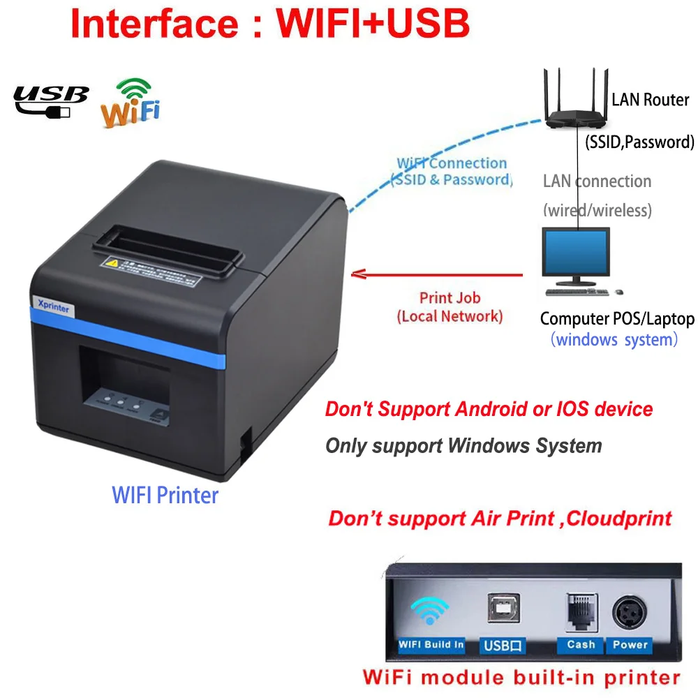 Bluetooth :Impression depuis un mobile (appareil Android) + application POS, la connexion directe à un PC par Bluetooth n'est pas prise en charge.