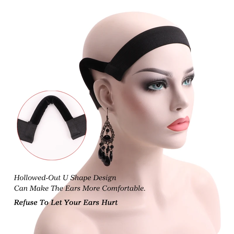 Yajukai 3Cm bande de bord pour perruques bande de fusion de dentelle 1/2 pièces bandes de perruque pour faire fondre dentelle bandeau noir avec coupures d'oreille pour rétrécir la dentelle