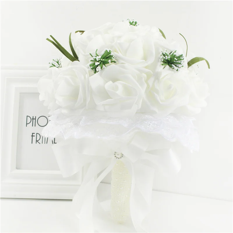 YO CHO Bouquet de mariée demoiselle d'honneur artificielle PE Rose fleur fausse perle Rose Bouquet fournitures de mariage décorations de Festival