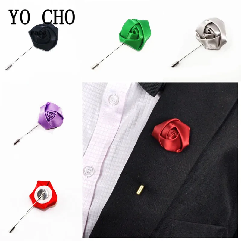 YO CHO mariage boutonnière marié broche broches soie Rose fleur boutonnières hommes costume mariage fleurs accessoires bal décorations