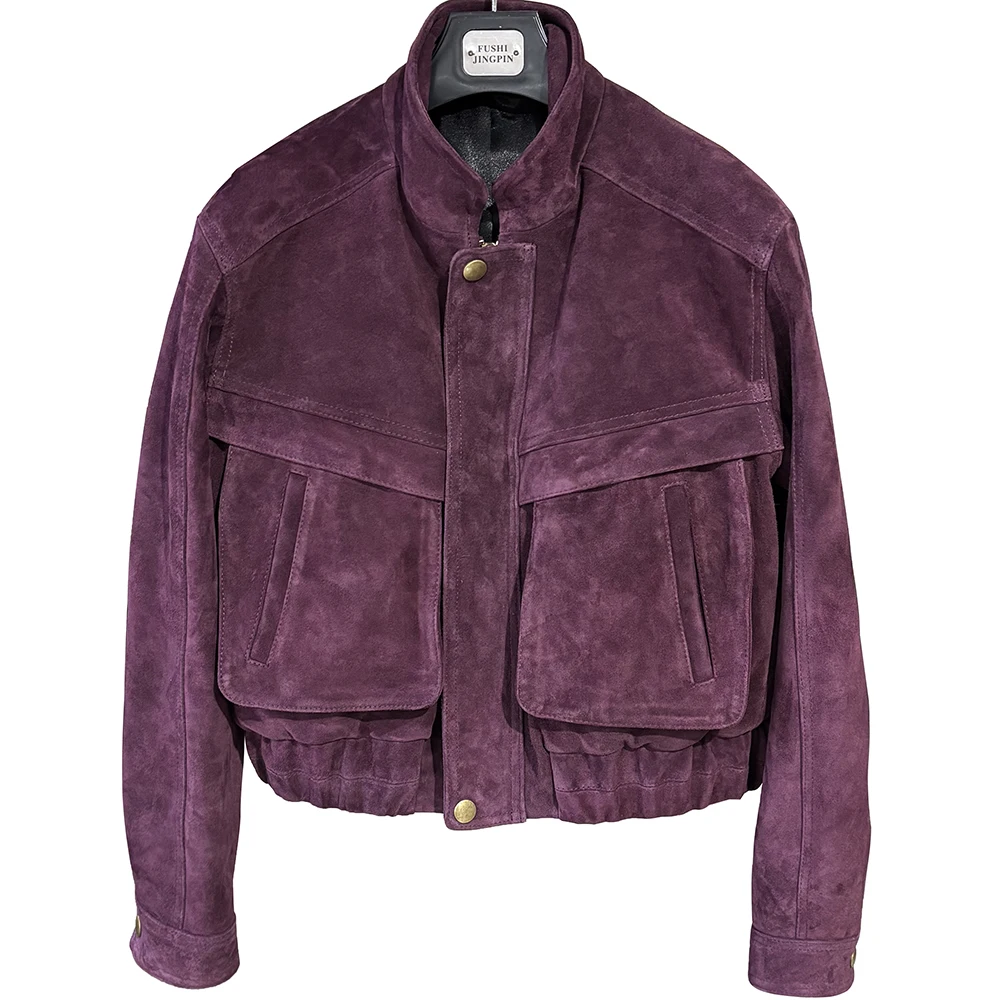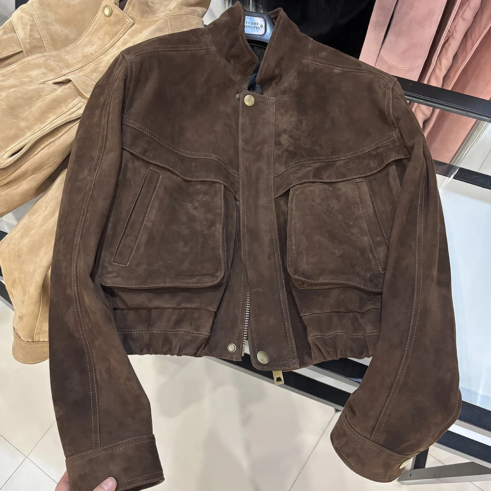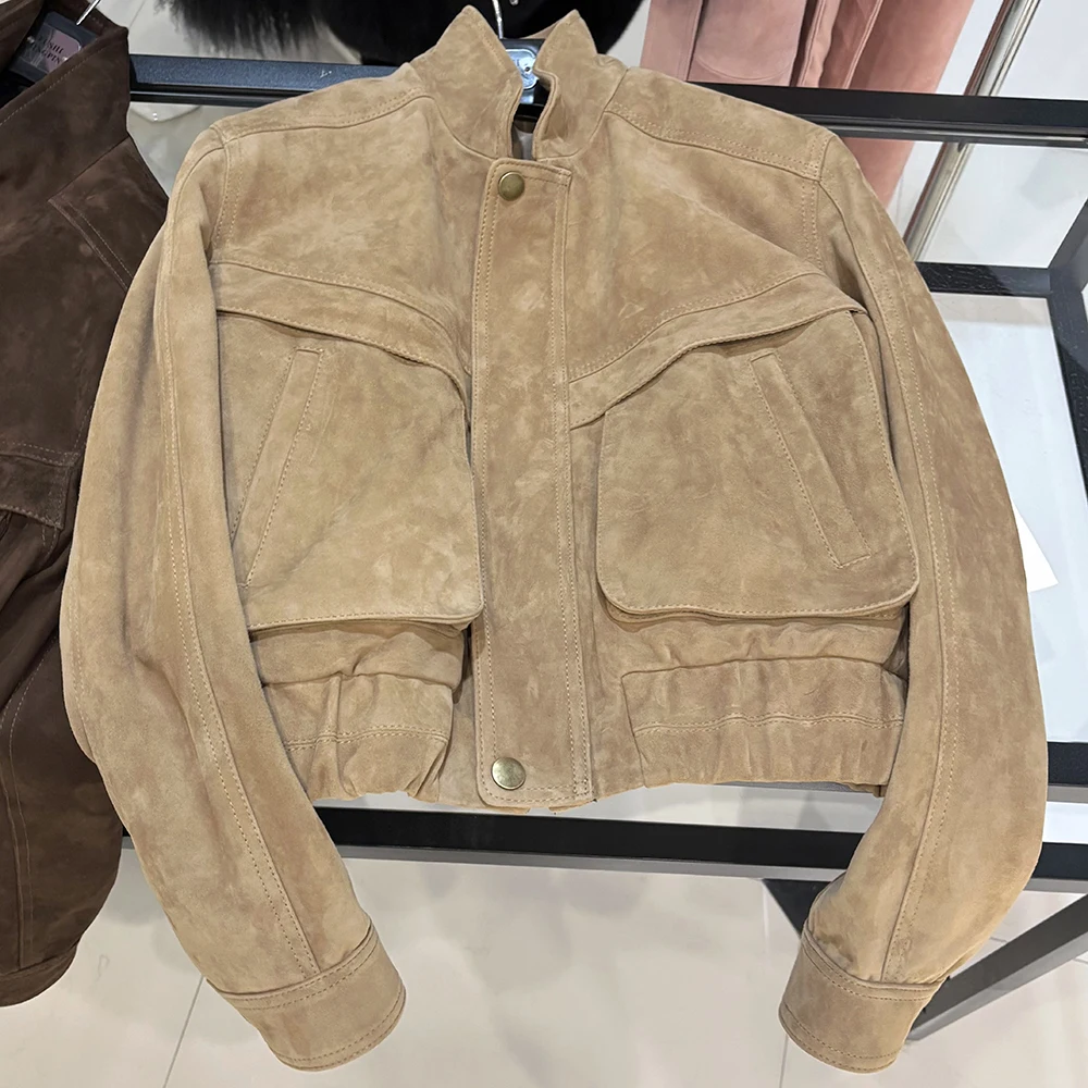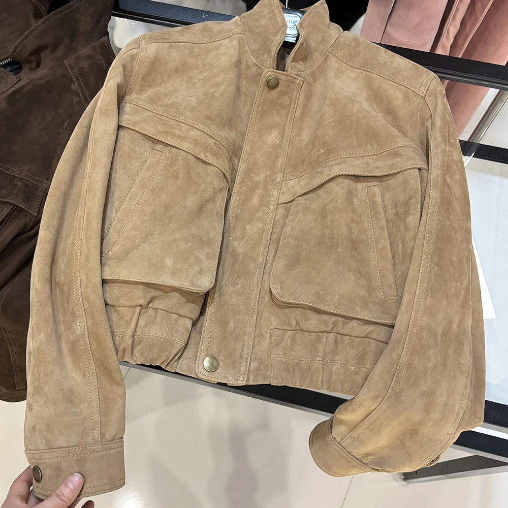 YOLOAgain 2025 automne nouvelle veste bombardier en daim manteau femmes véritable peau de mouton grainé veste en cuir dames