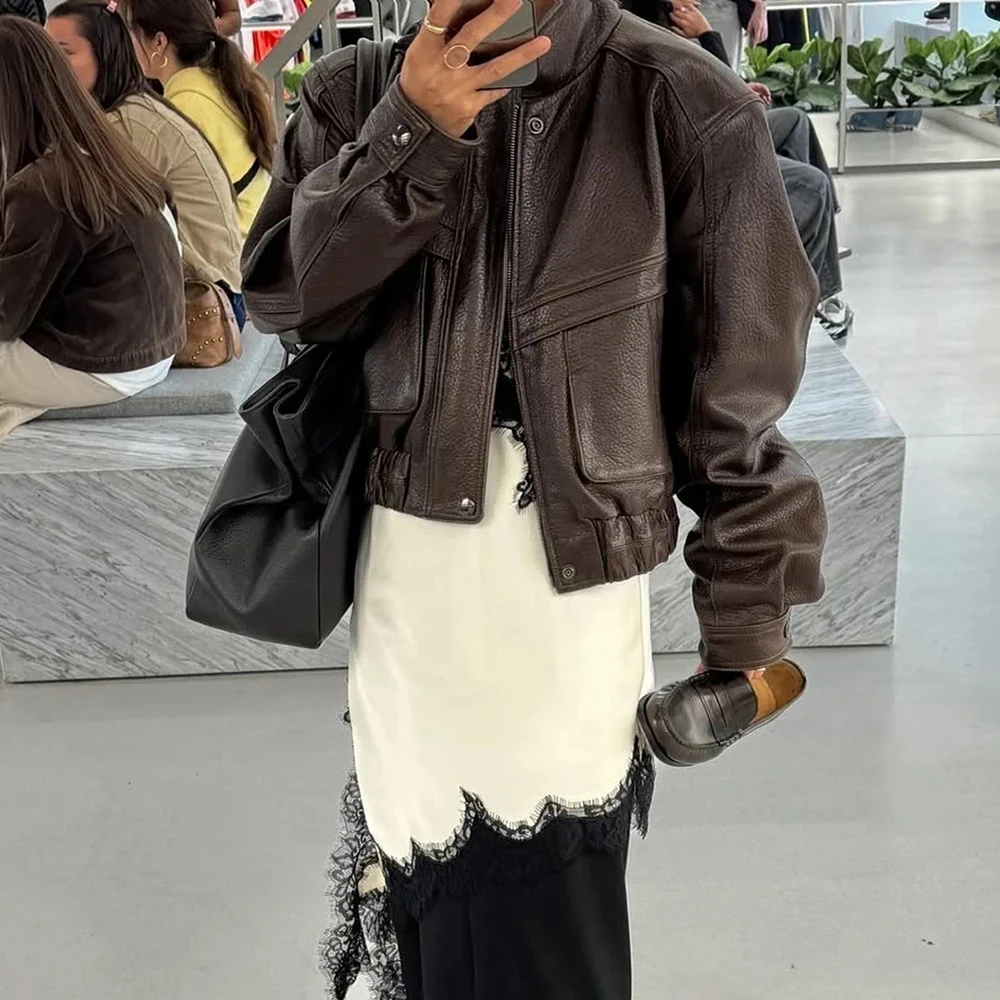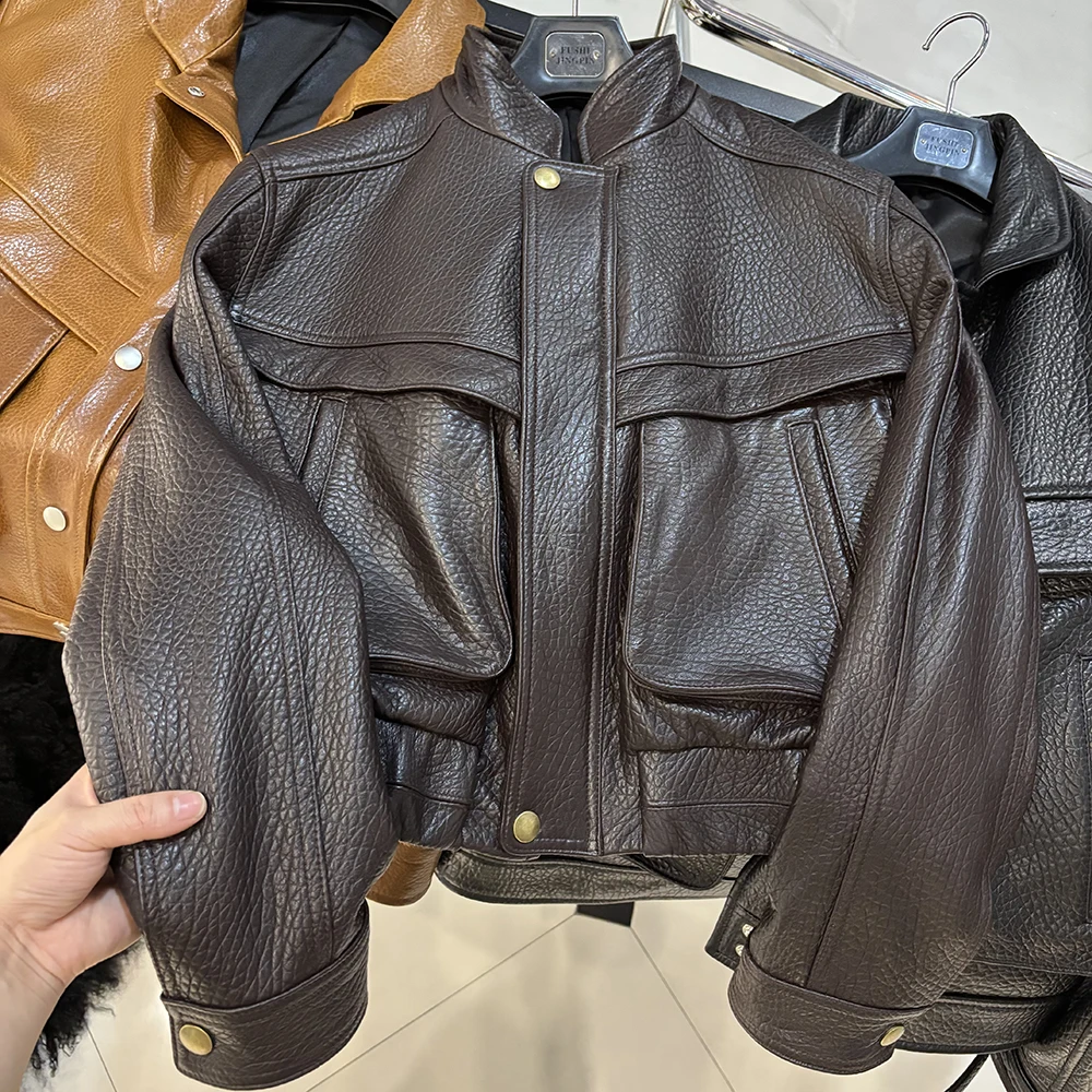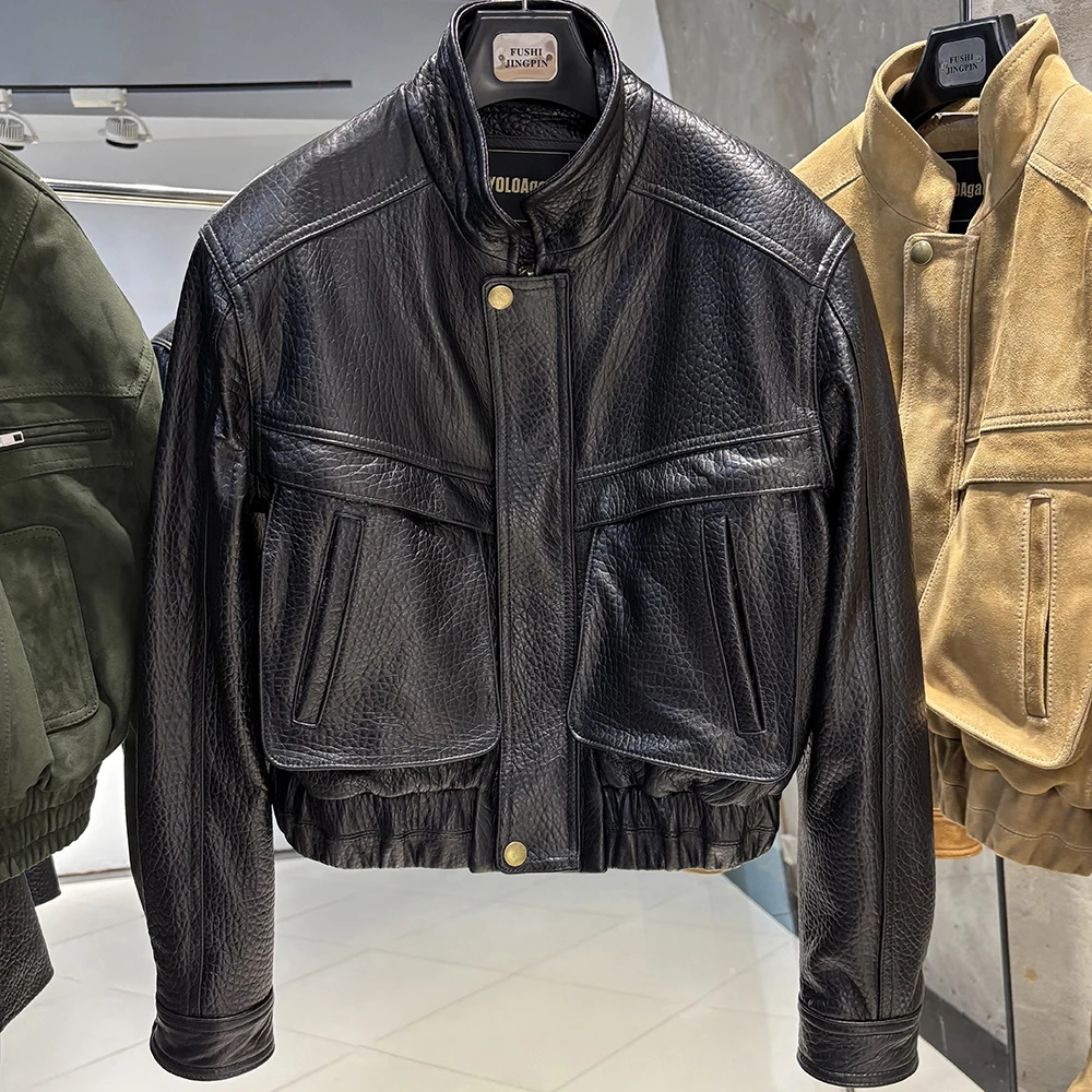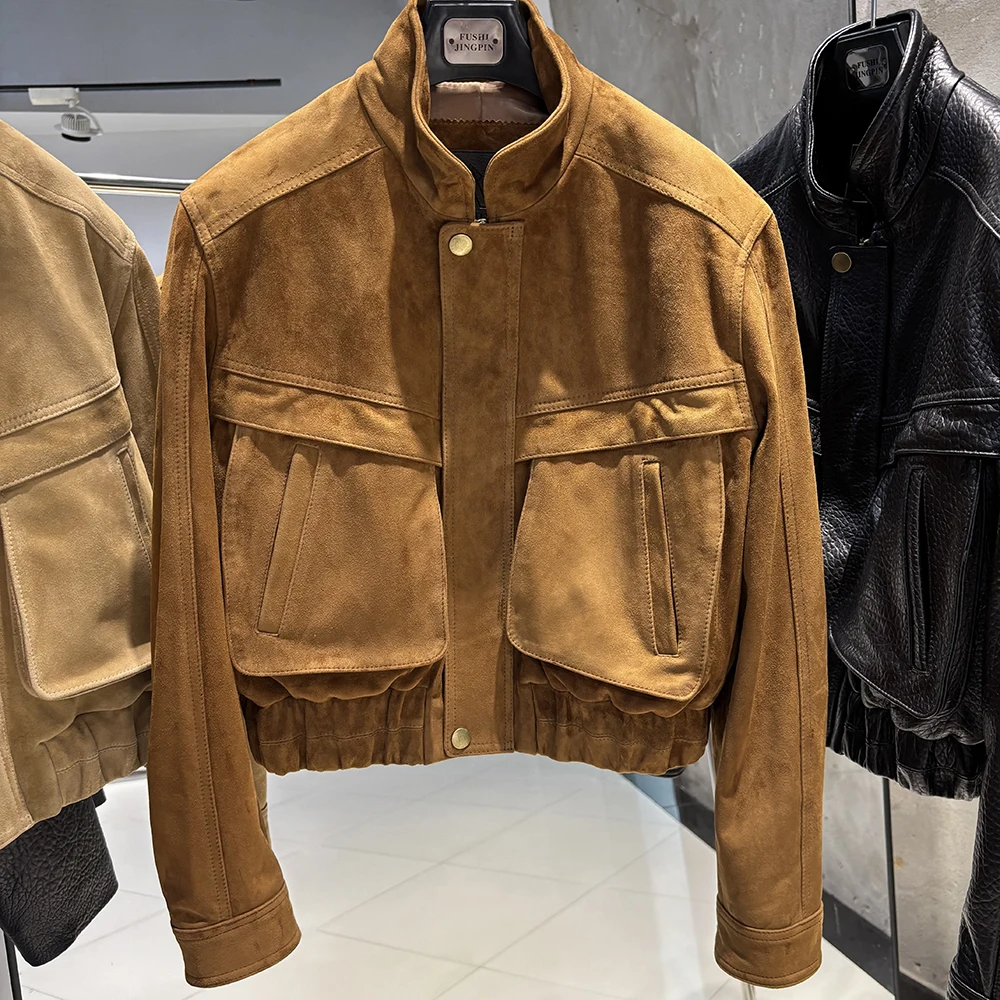 YOLOAgain 2025 automne nouvelle veste bombardier en daim manteau femmes véritable peau de mouton grainé veste en cuir dames