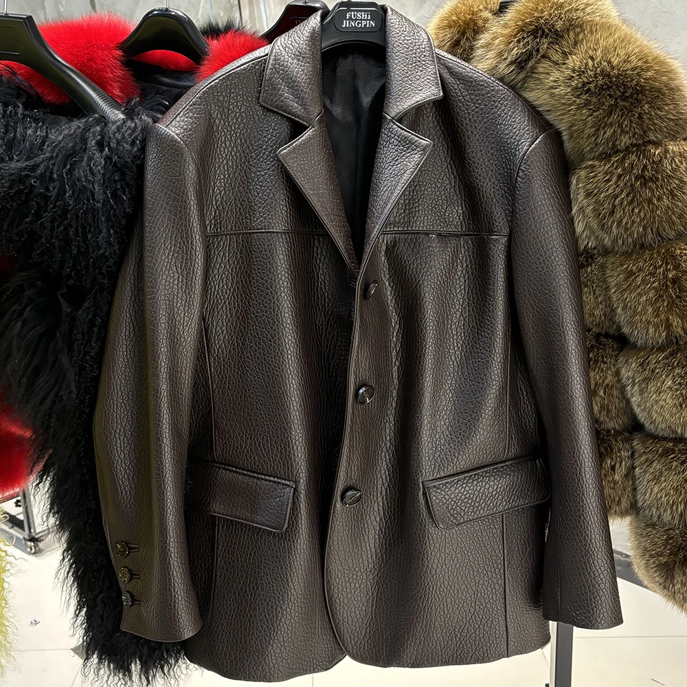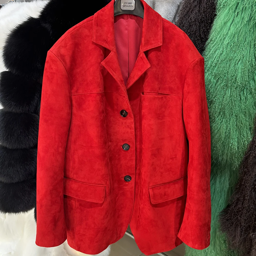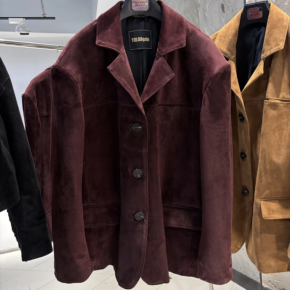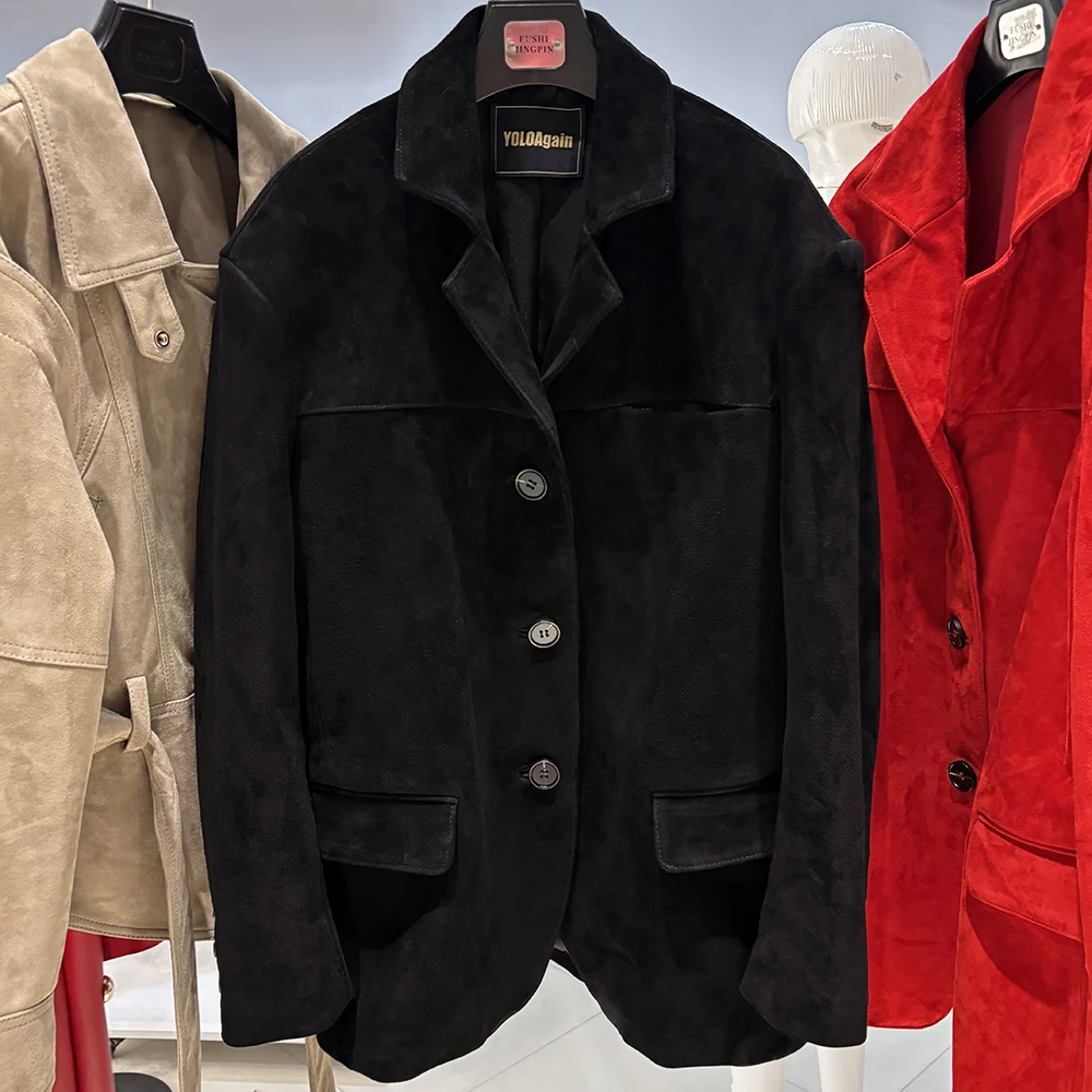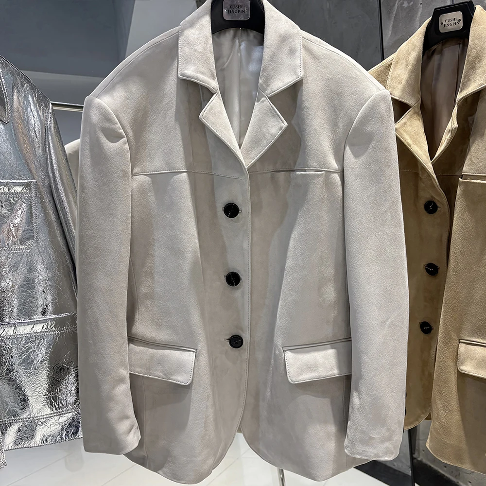 YOLOAgain femmes surdimensionné daim cuir Blazer simple boutonnage veste en cuir véritable femme 2025 printemps
