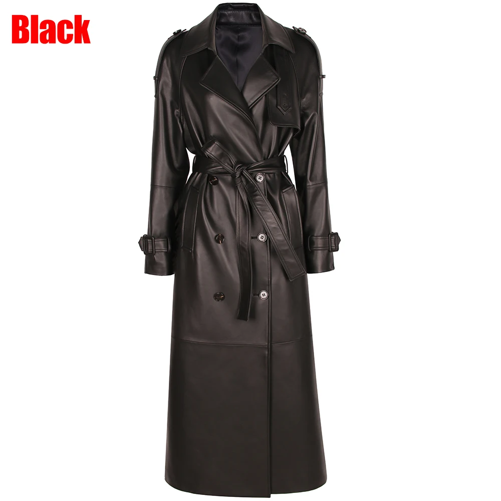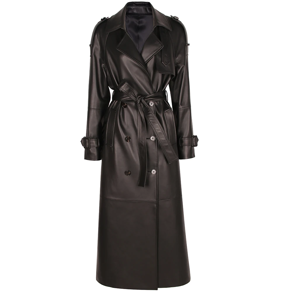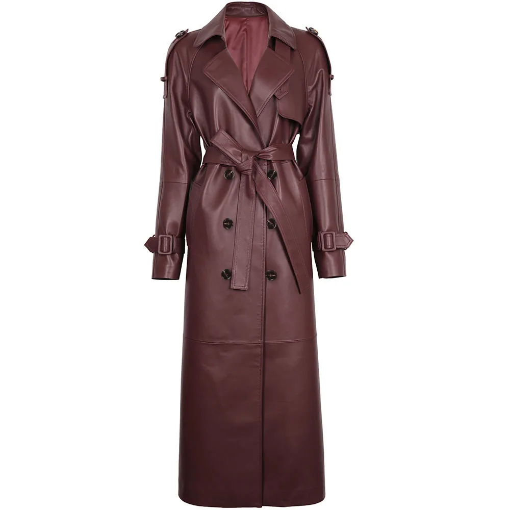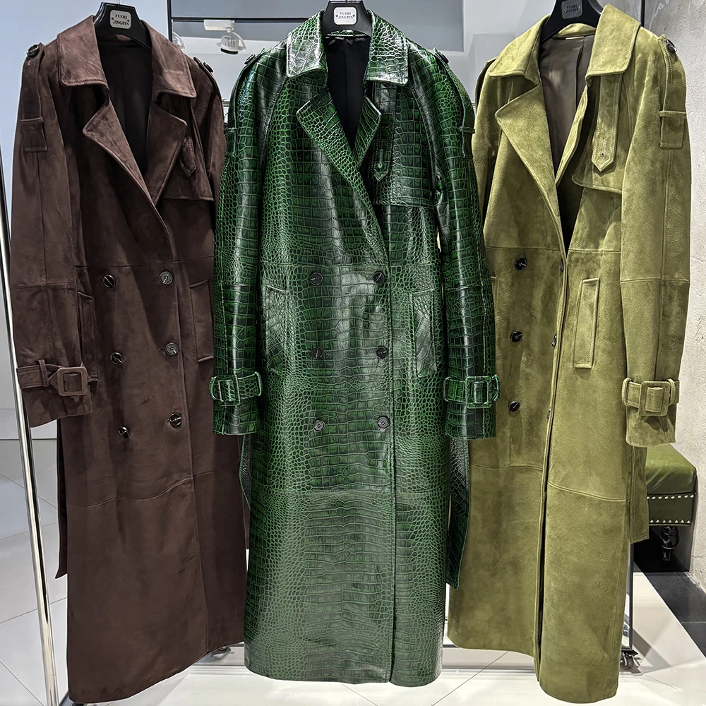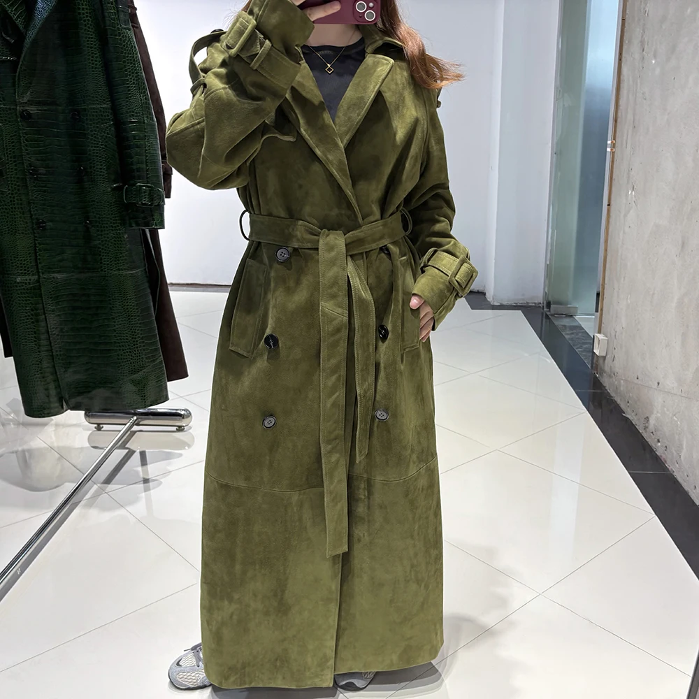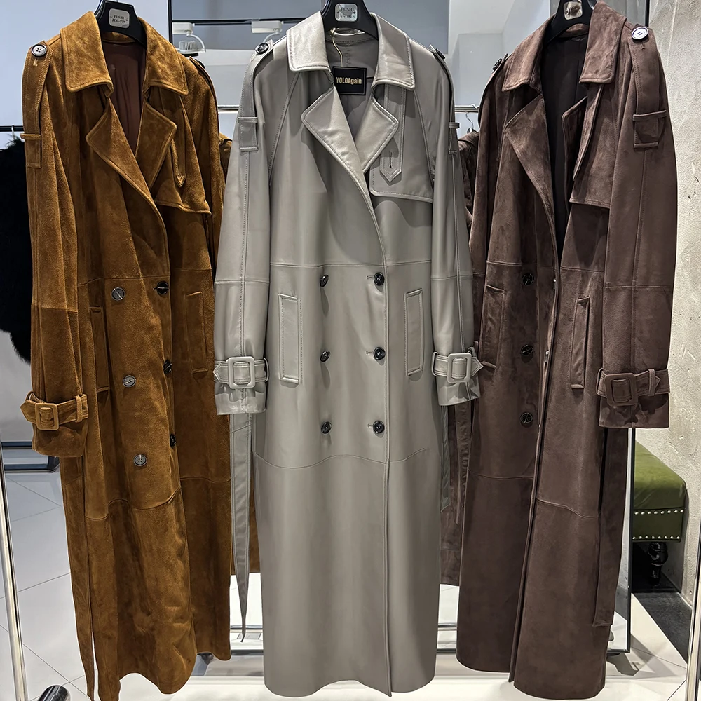 YOLOAgain veste en daim Double boutonnage manteau femmes Trench-Coat en cuir véritable