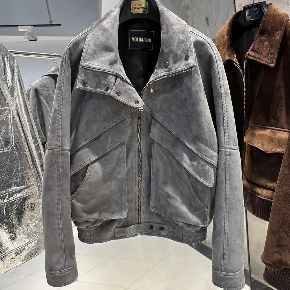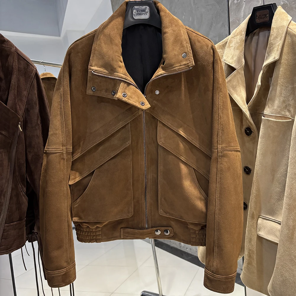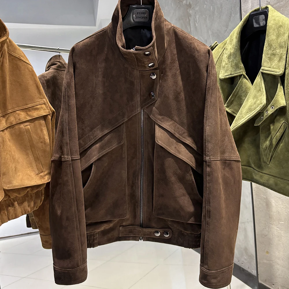 YOLOAgain veste en daim marron chocolat femme veste en cuir véritable femme