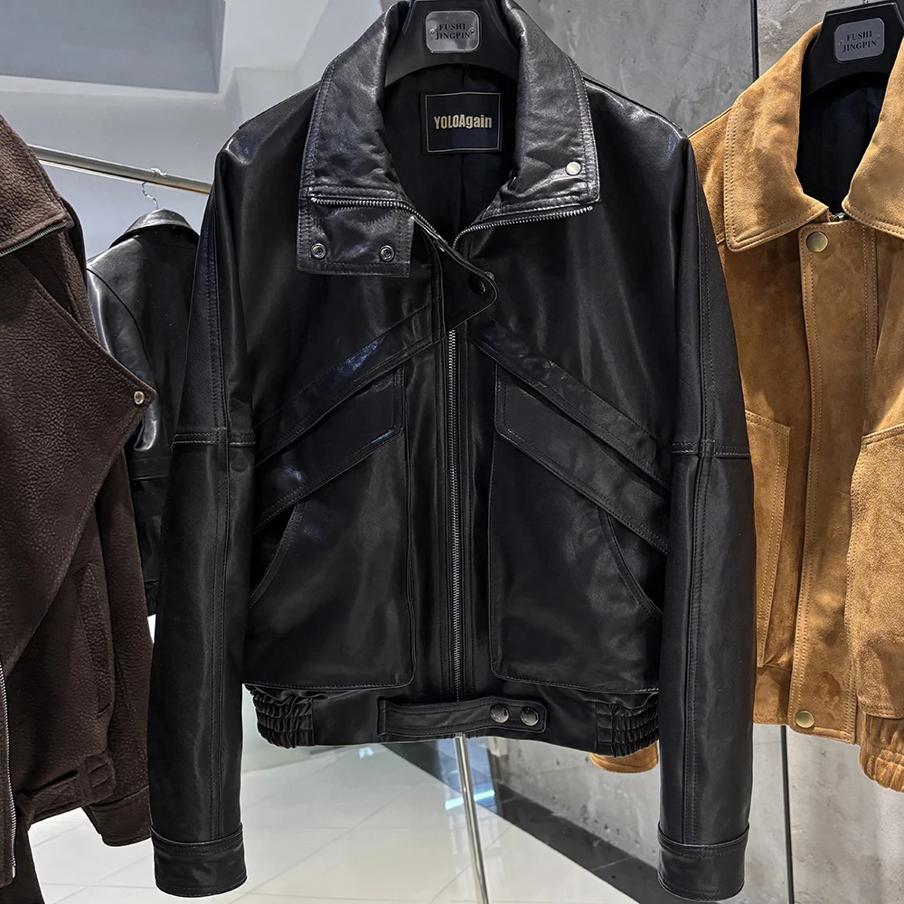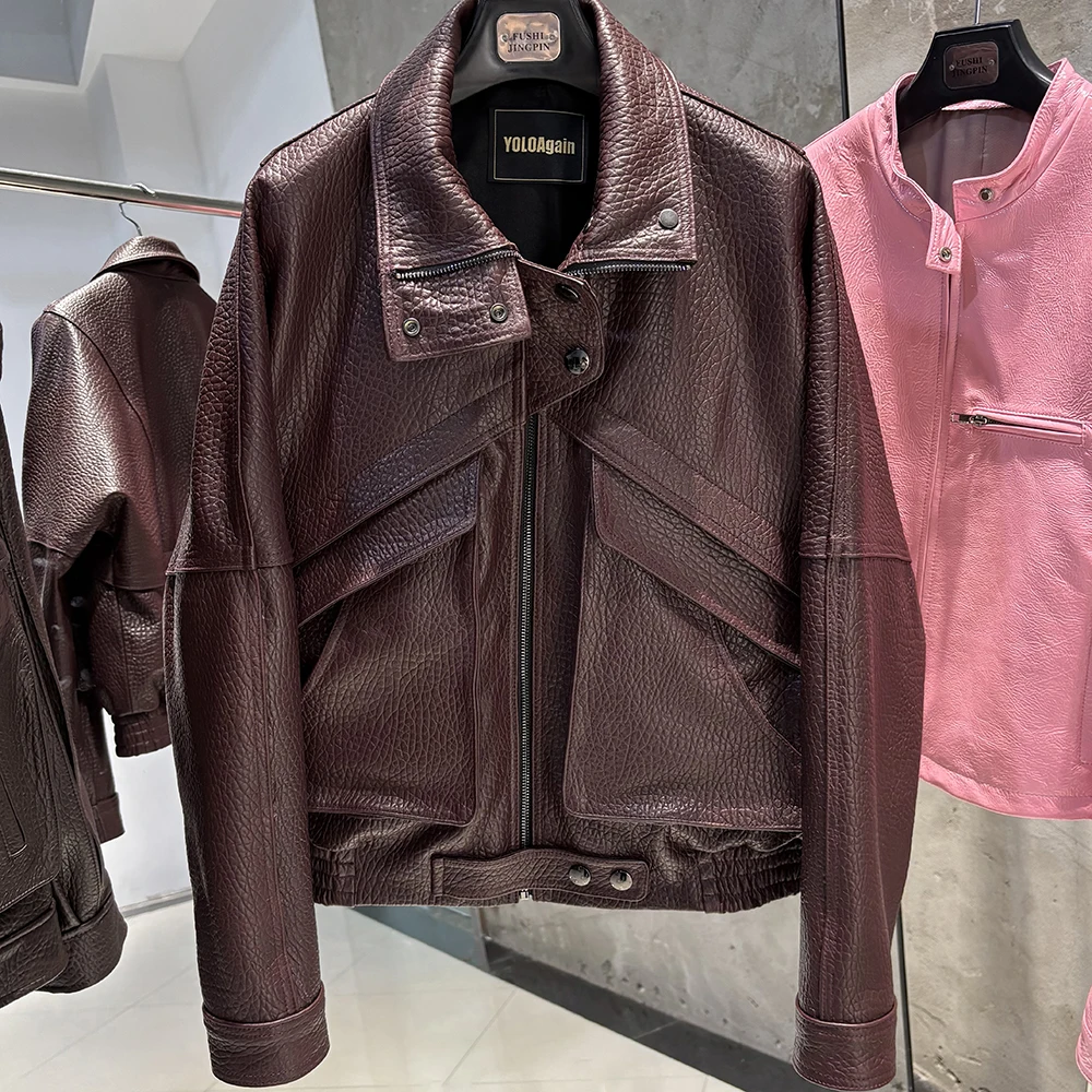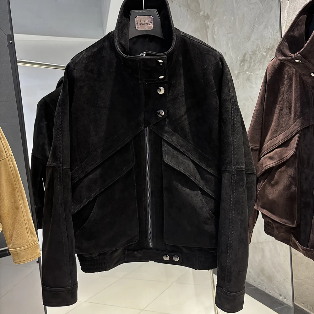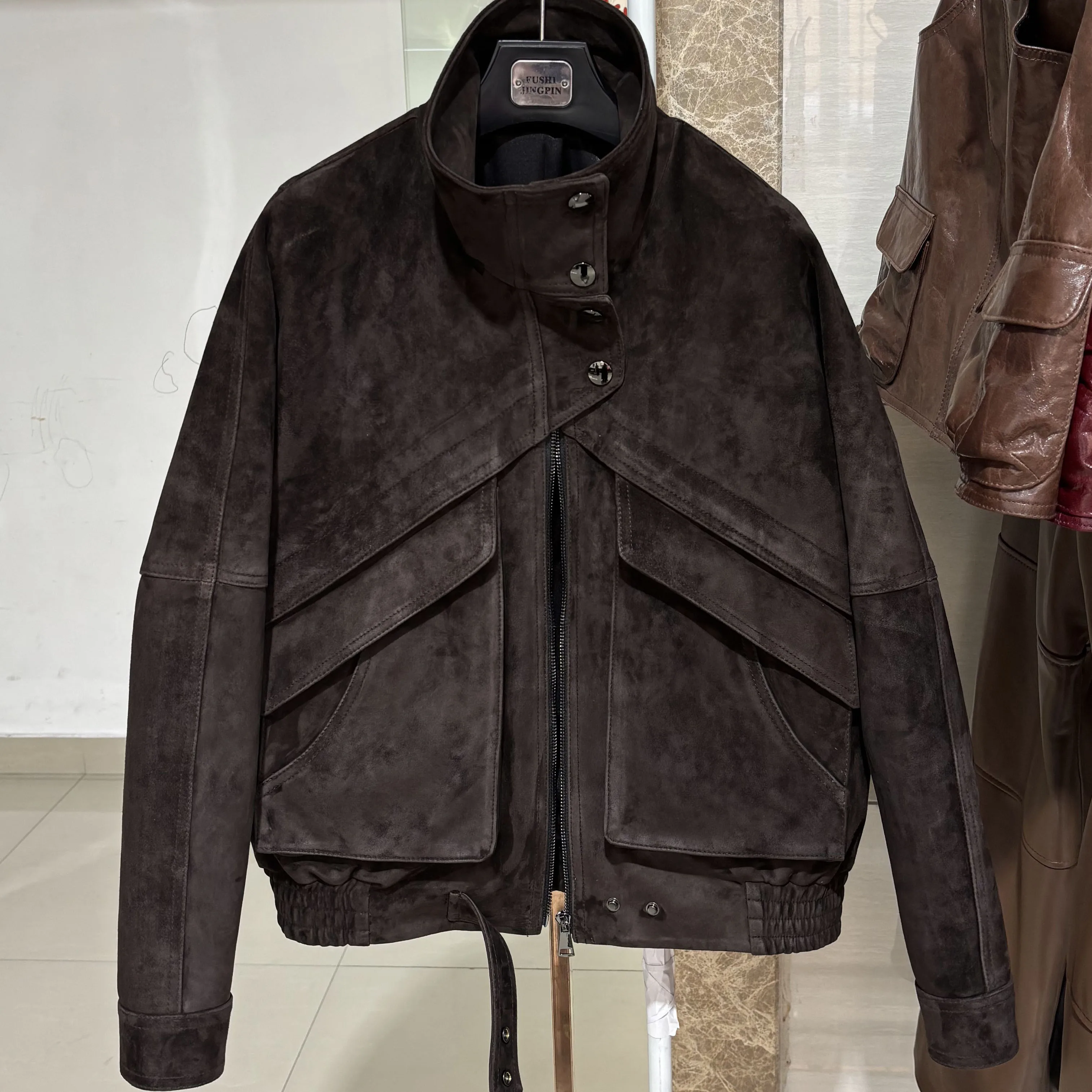 YOLOAgain veste en daim marron chocolat femme veste en cuir véritable femme
