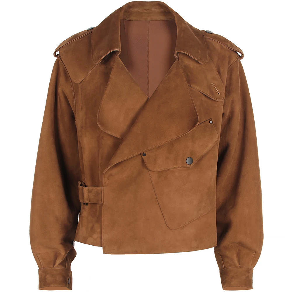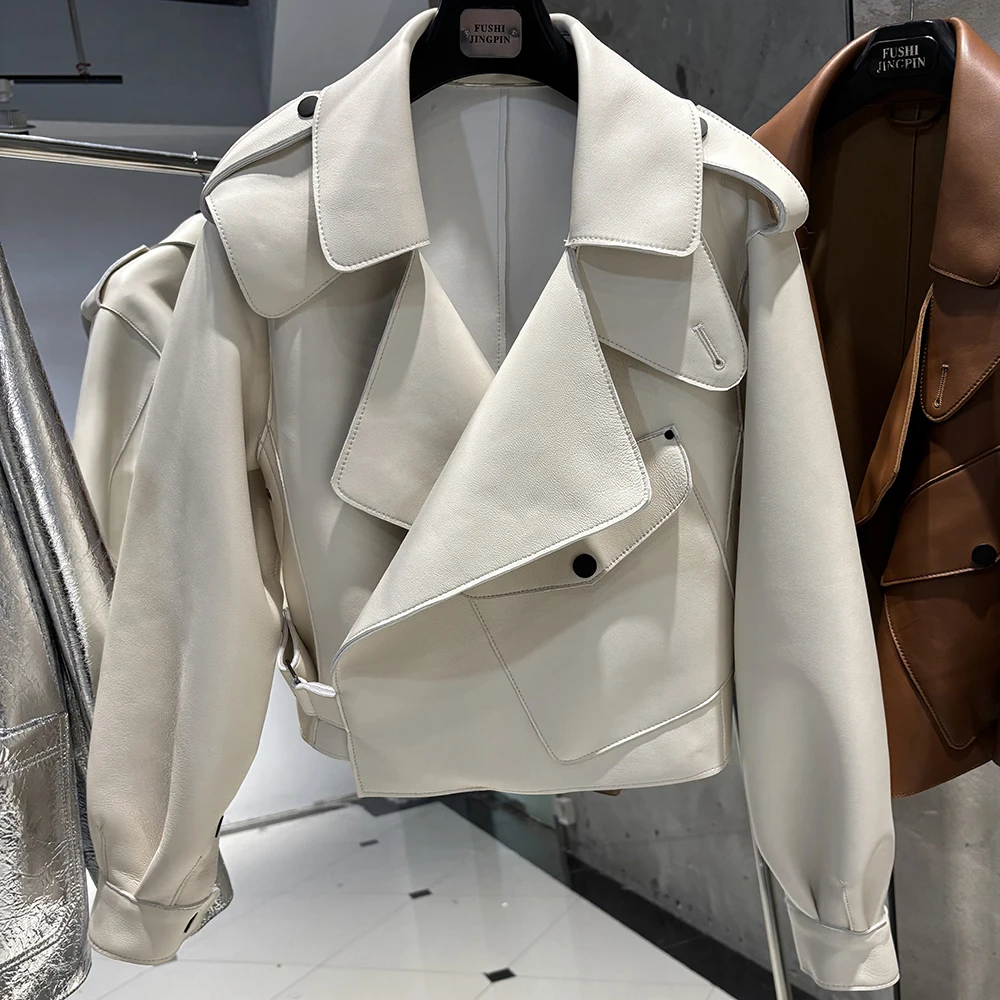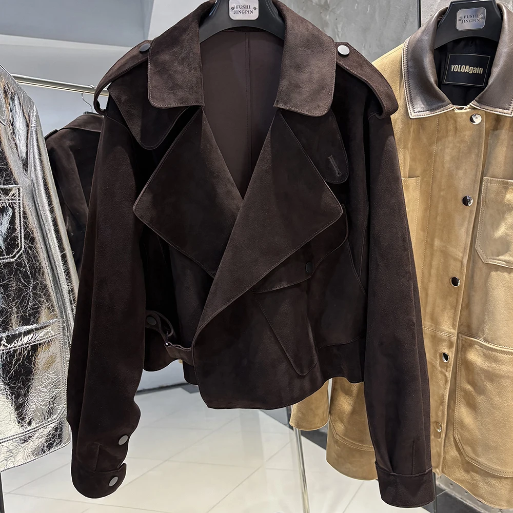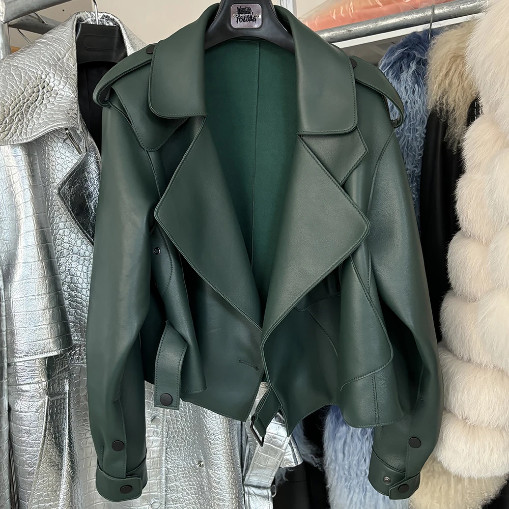 YOLOAgain veste surdimensionnée en cuir véritable manteau en peau de mouton pour femme