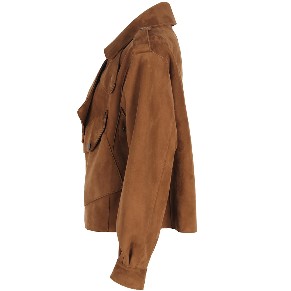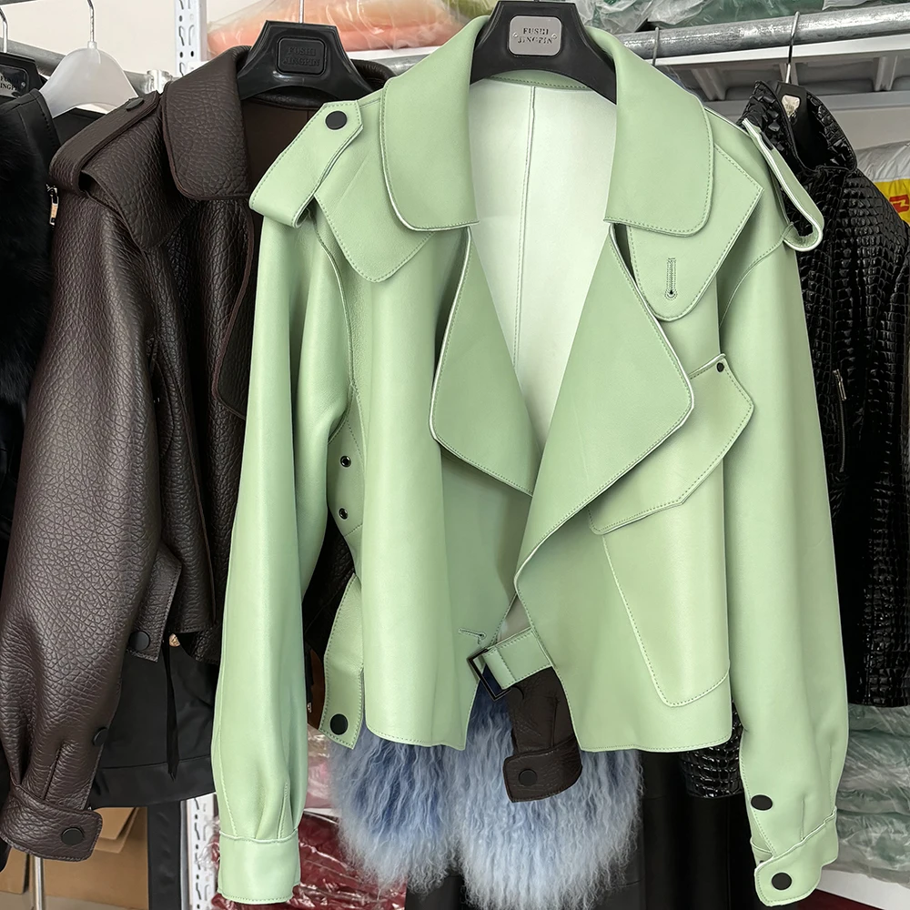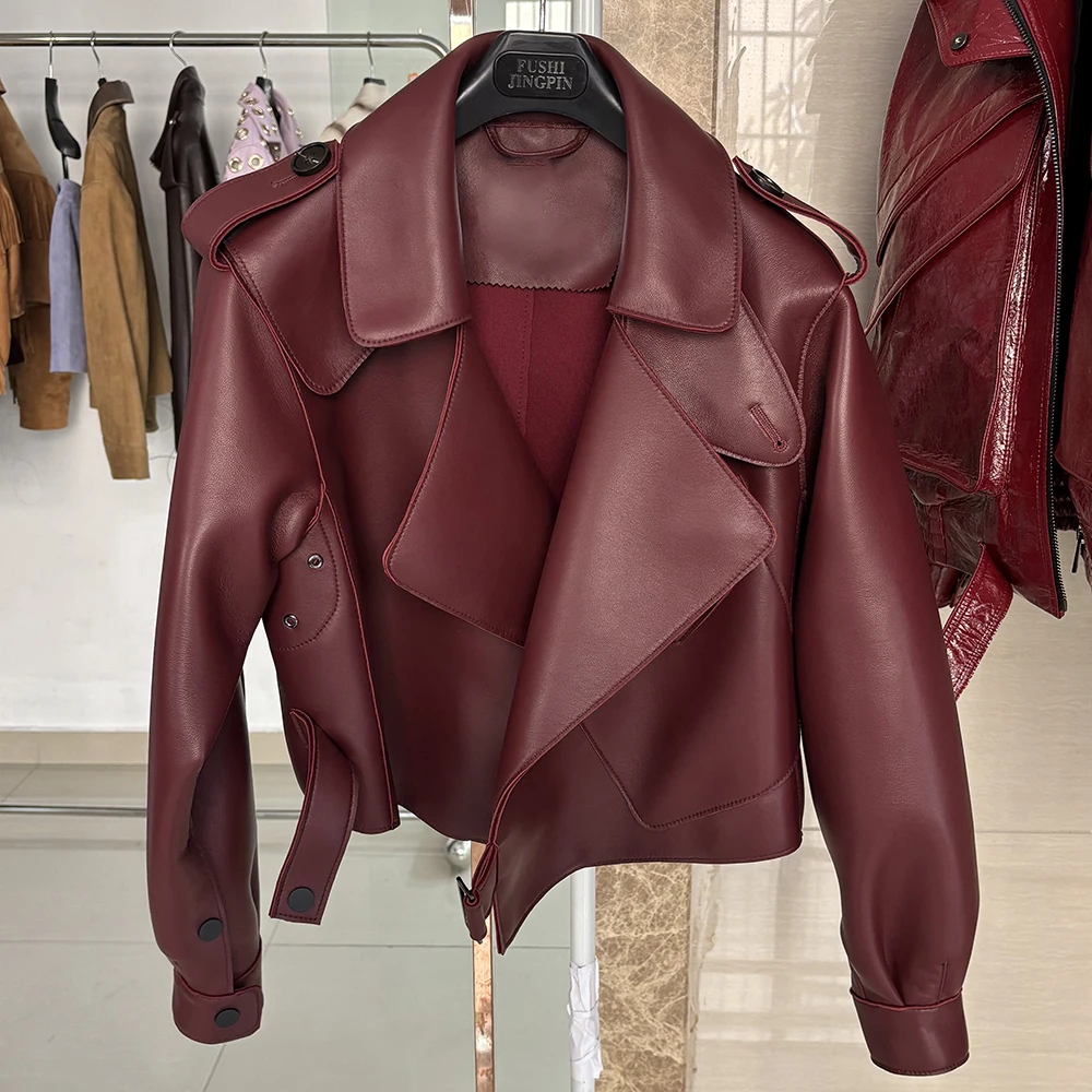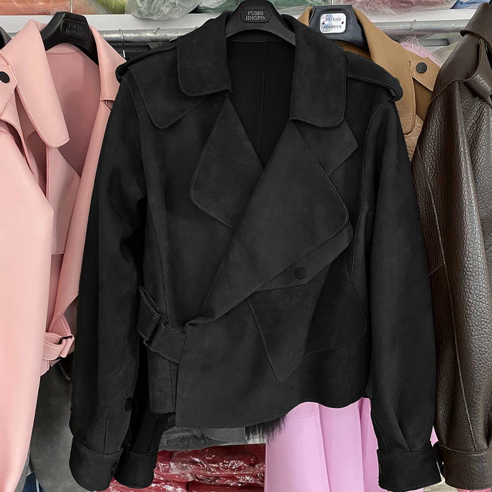 YOLOAgain veste surdimensionnée en cuir véritable manteau en peau de mouton pour femme