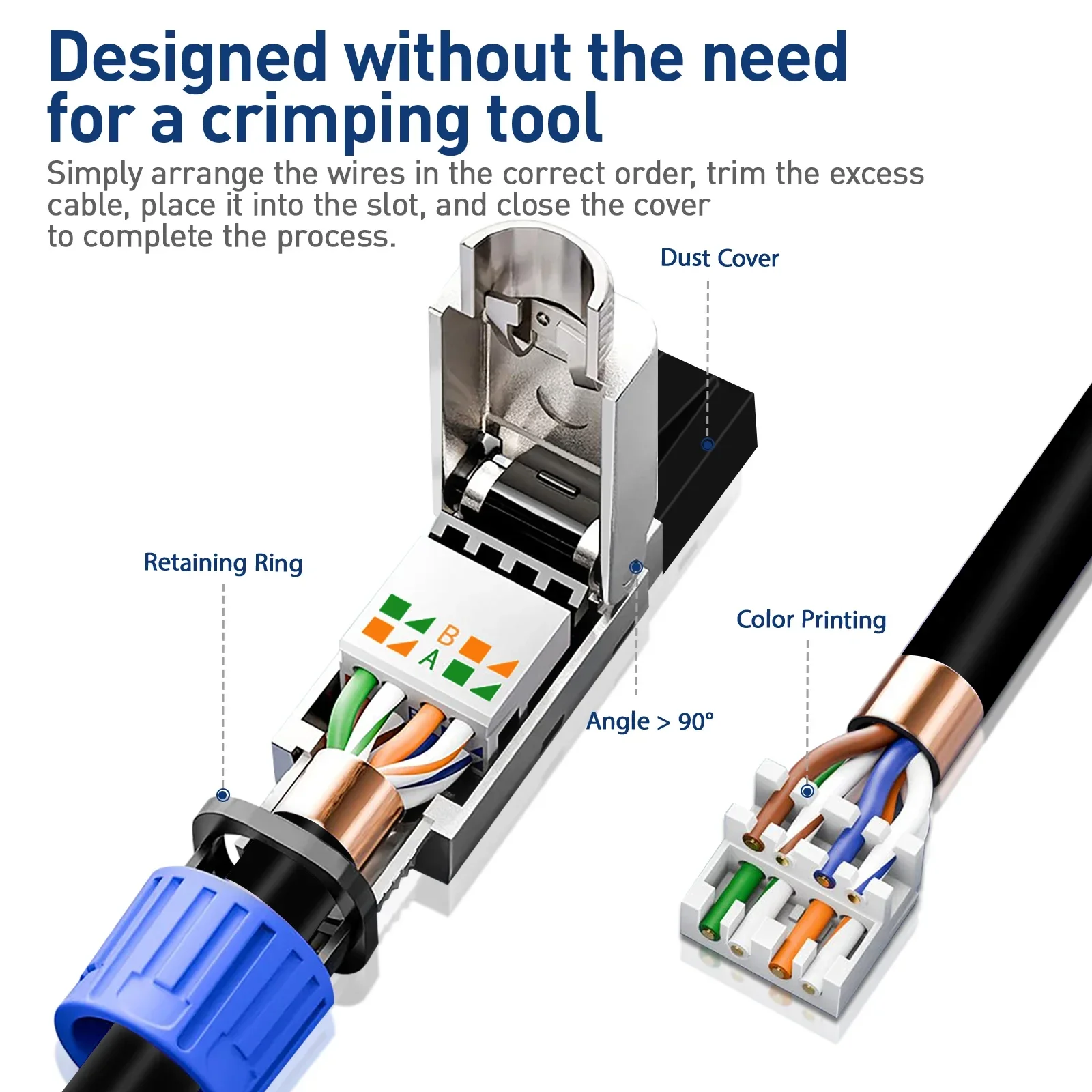Aucun outil de sertissage nécessaire : disposez simplement les fils, coupez-les, insérez-les dans la fente et fermez le couvercle.